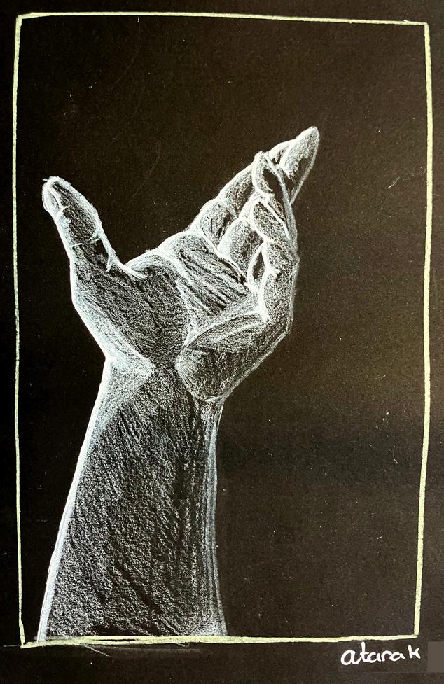 This led the students to consider the many ways that hand positions can send messages, from fear and resistance, to love, acceptance, and unity In their art classes and on our special day of commemoration, students created work that explored the theme of hands, and the messages they send.