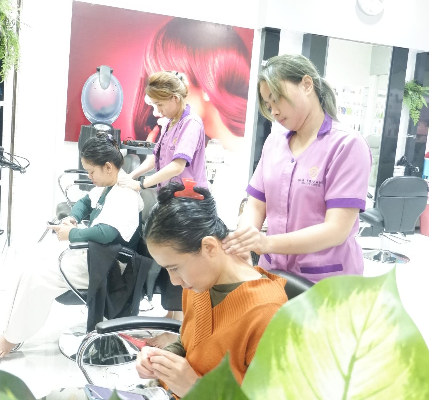 Perawatan rambut dengan mengaplikasikan cream ber-aroma tradisional (ginseng/avocado) beserta pijat kepala, punggung, dan tangan