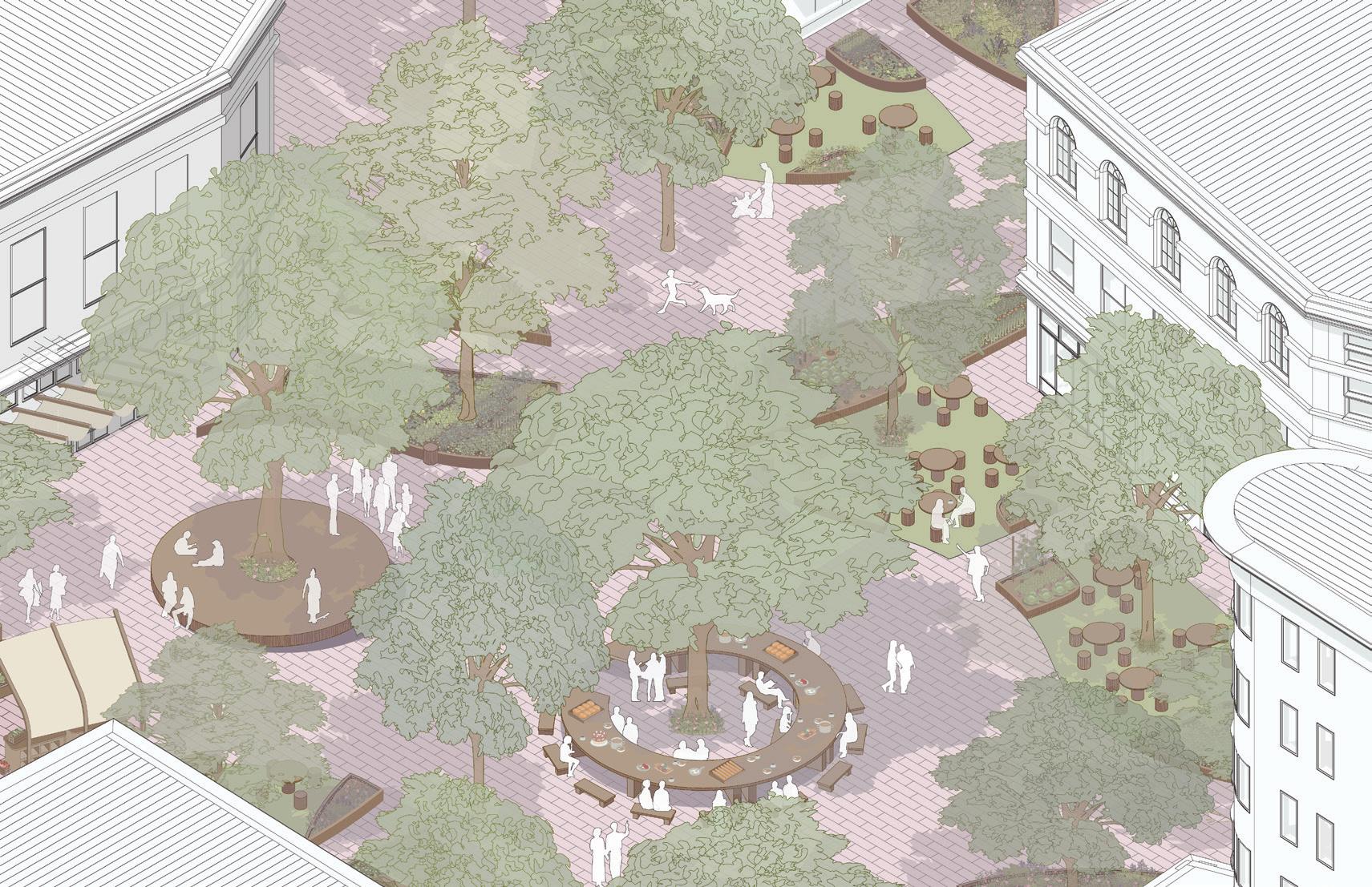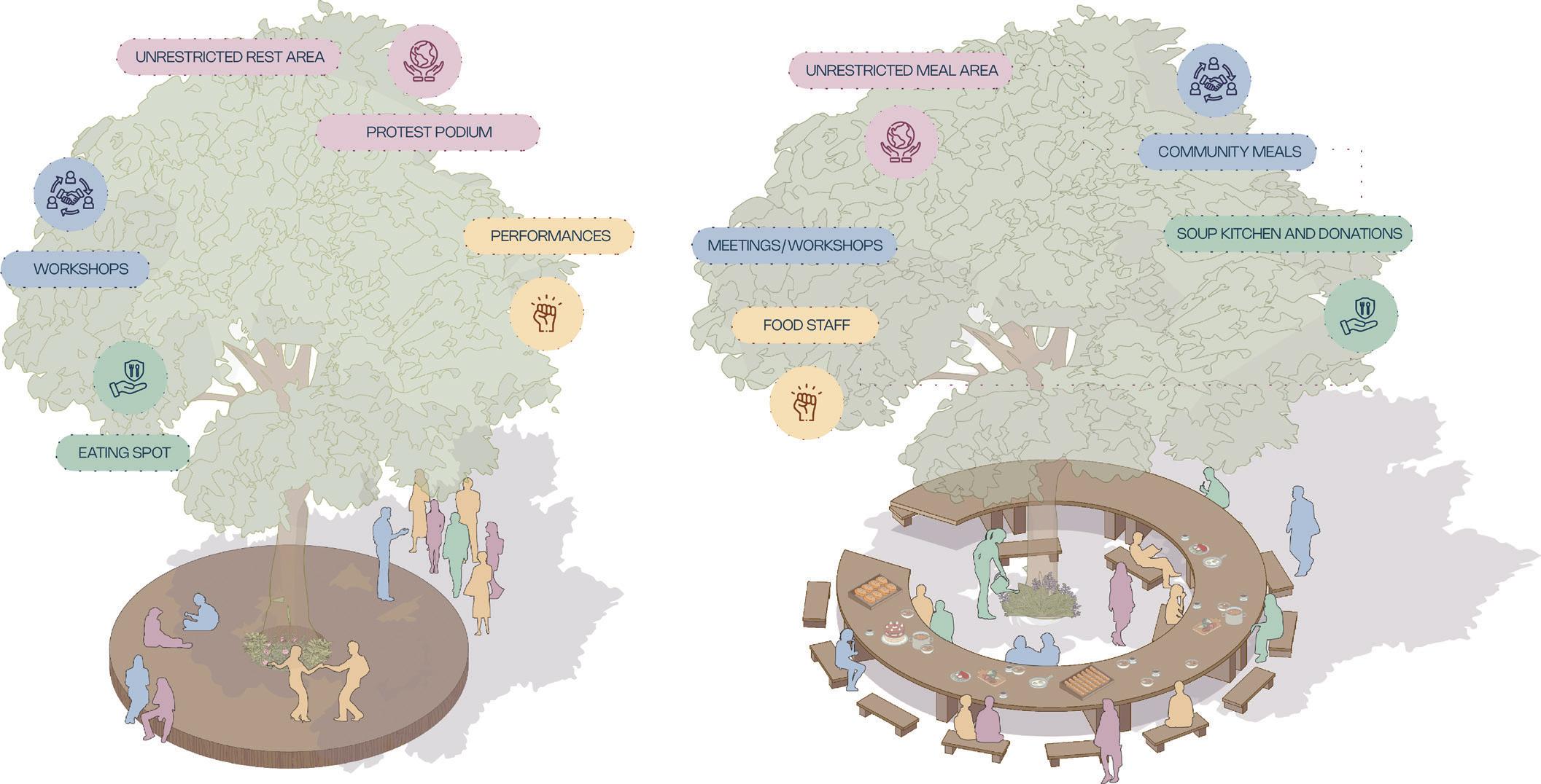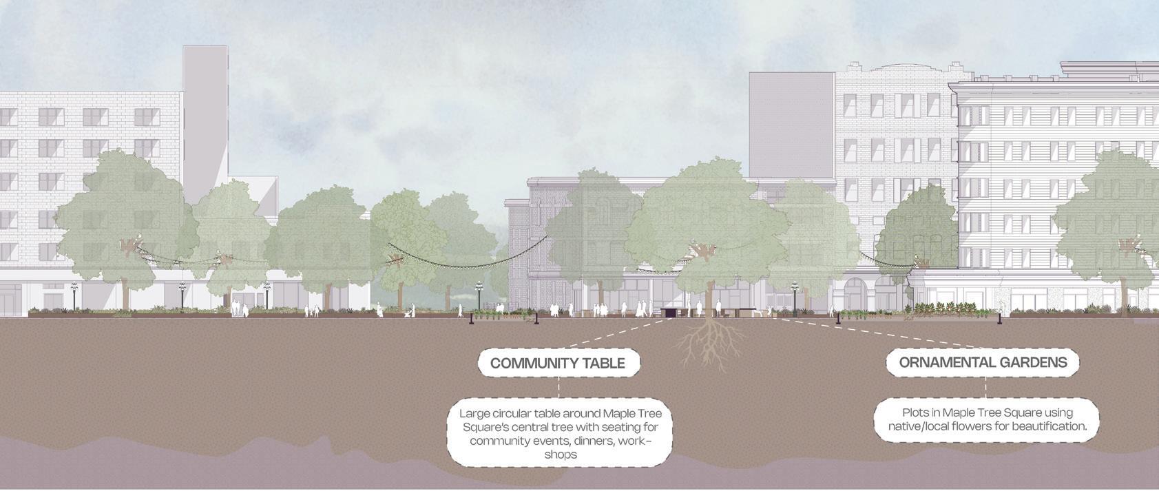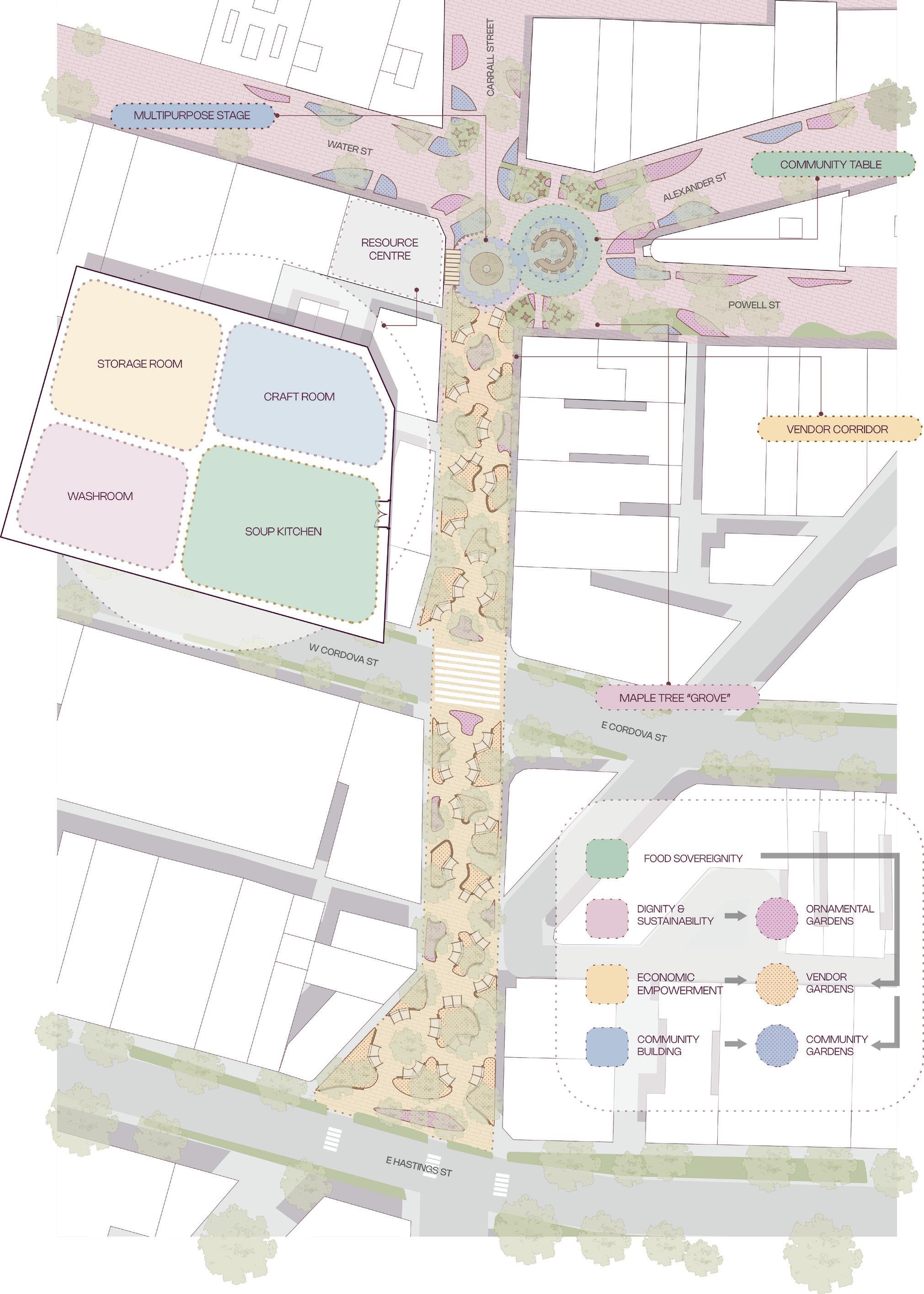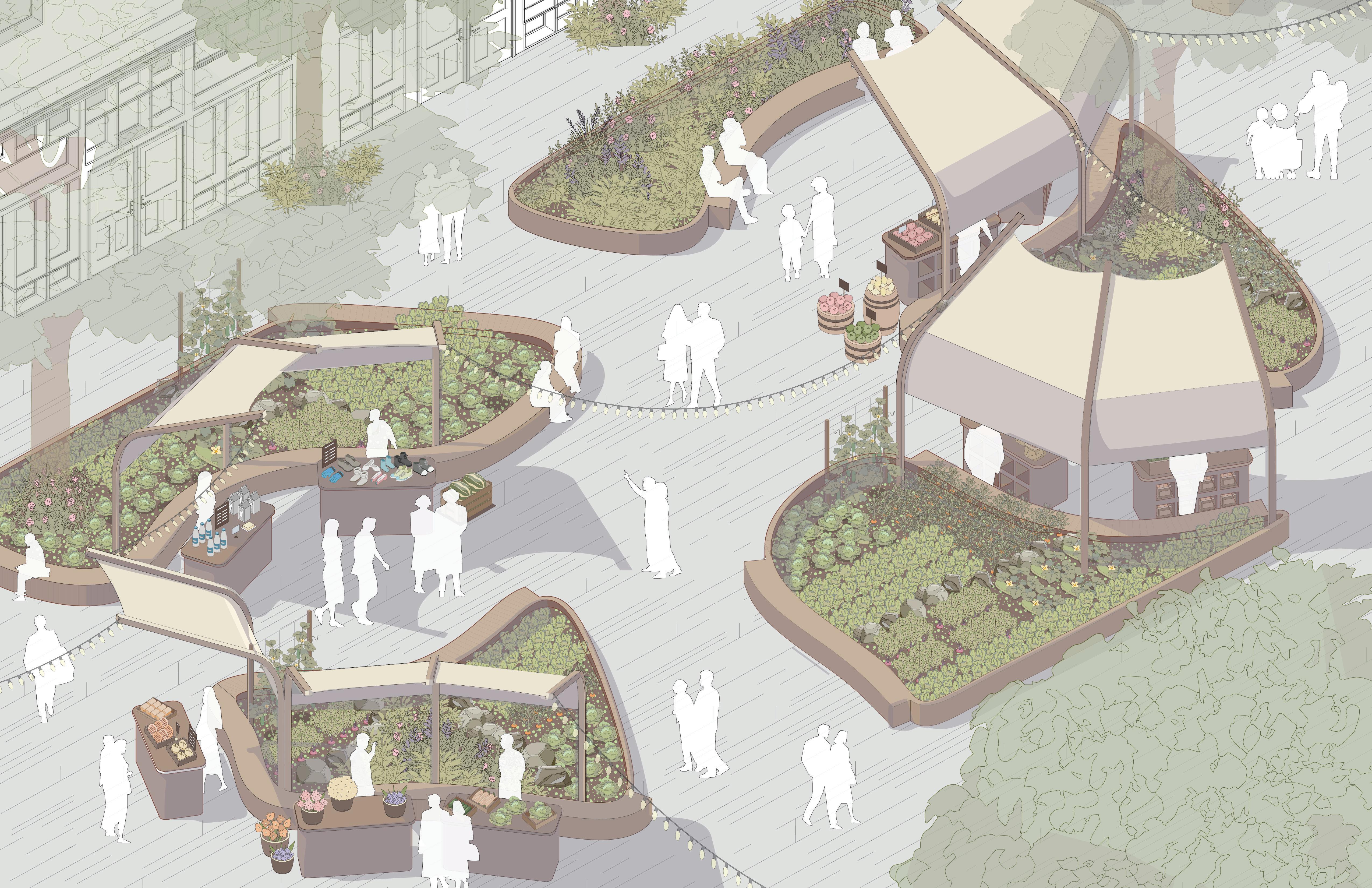 My proposed design concept focuses on creating a sustainable ecosystem that fosters self-reliance and community integration while dismantling socio-economic barriers and reclaiming space for unhoused marginalized demographics