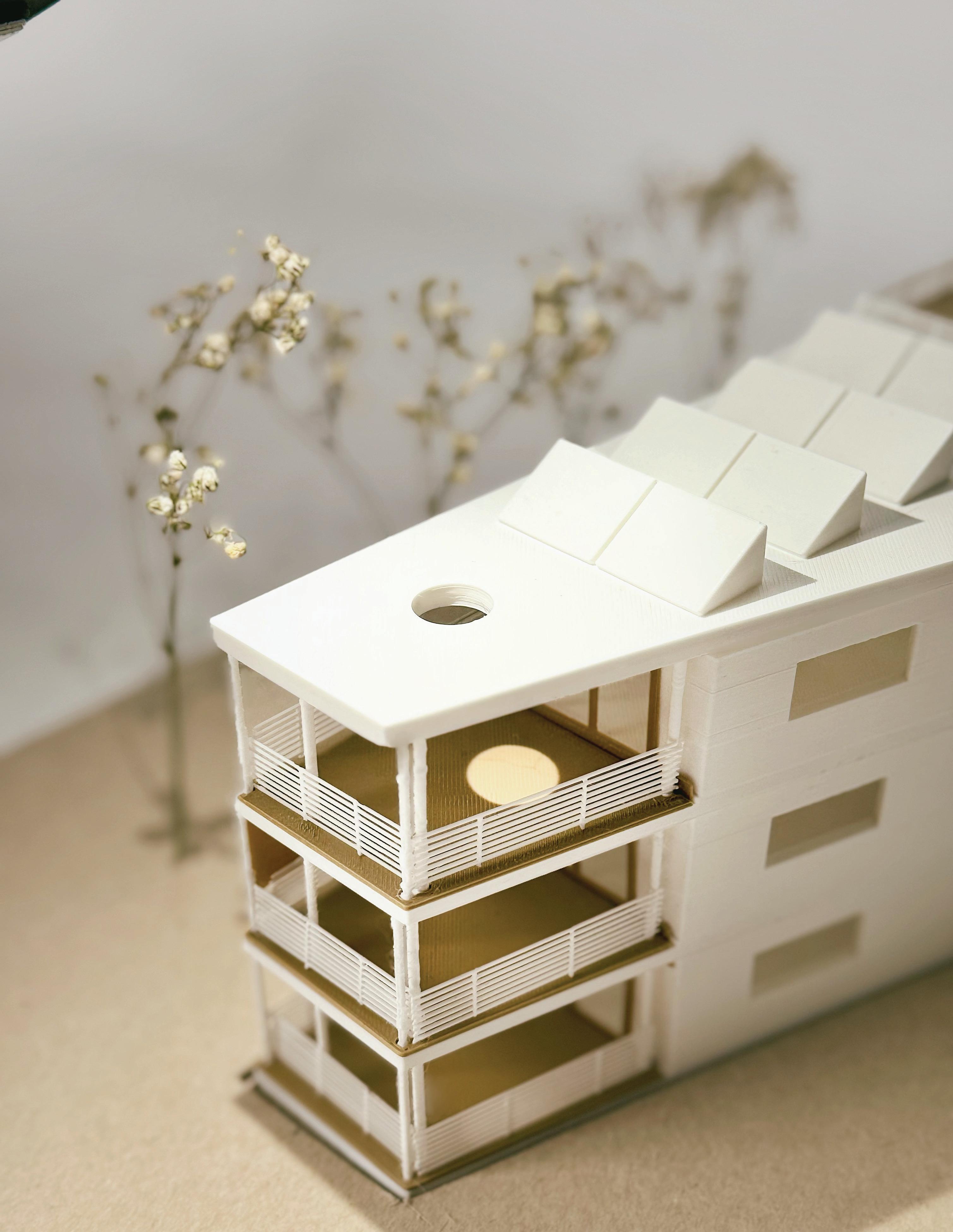 Perfora is a vibrant, versatile living space designed to foster creativity and community among individuals and families of all ages. Featuring a diverse range of housing options from studios to three bedroom room units, the development accommodates varied life-styles while inspiring collaboration and expression. Drawing inspiration from the informal art surrounding the site, particularly the graffiti art on a wall now hosting a thriving art gallery, the design integrates heritage elements with modern touches. The alleyway, a mature tree, and the original brick facades have been thoughtfully preserved and accentuated, most notably, the brick wall has been extended into a perforated brick installation. This striking feature functions both as a light-ltering art piece and a seamless in-door-to-outdoor connection for communalspaces.