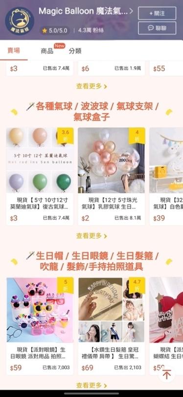 販售魔法氣球實體店面中現有的商品。