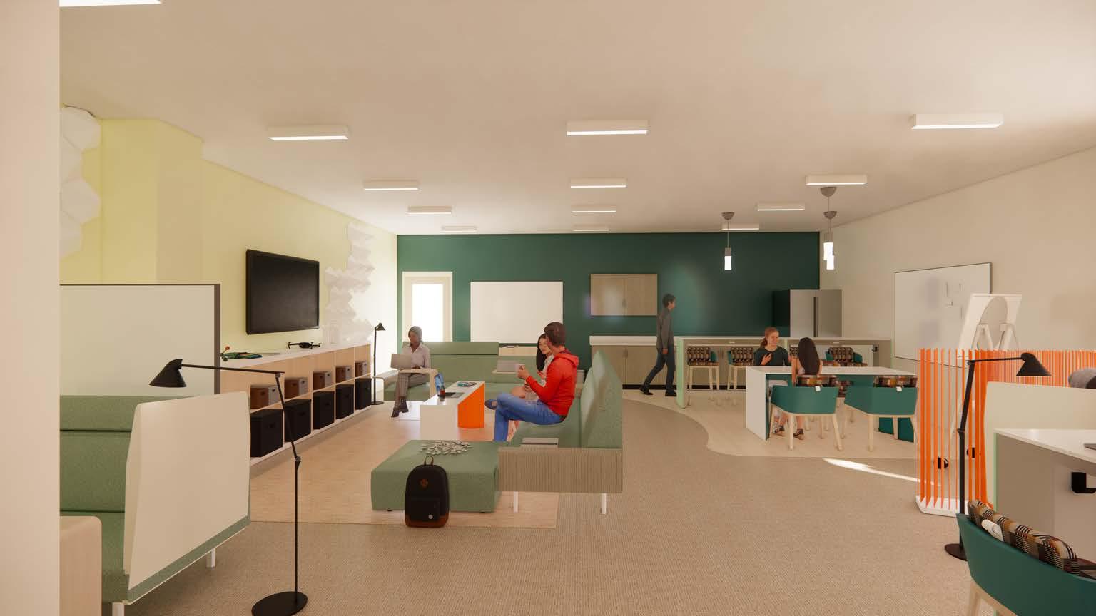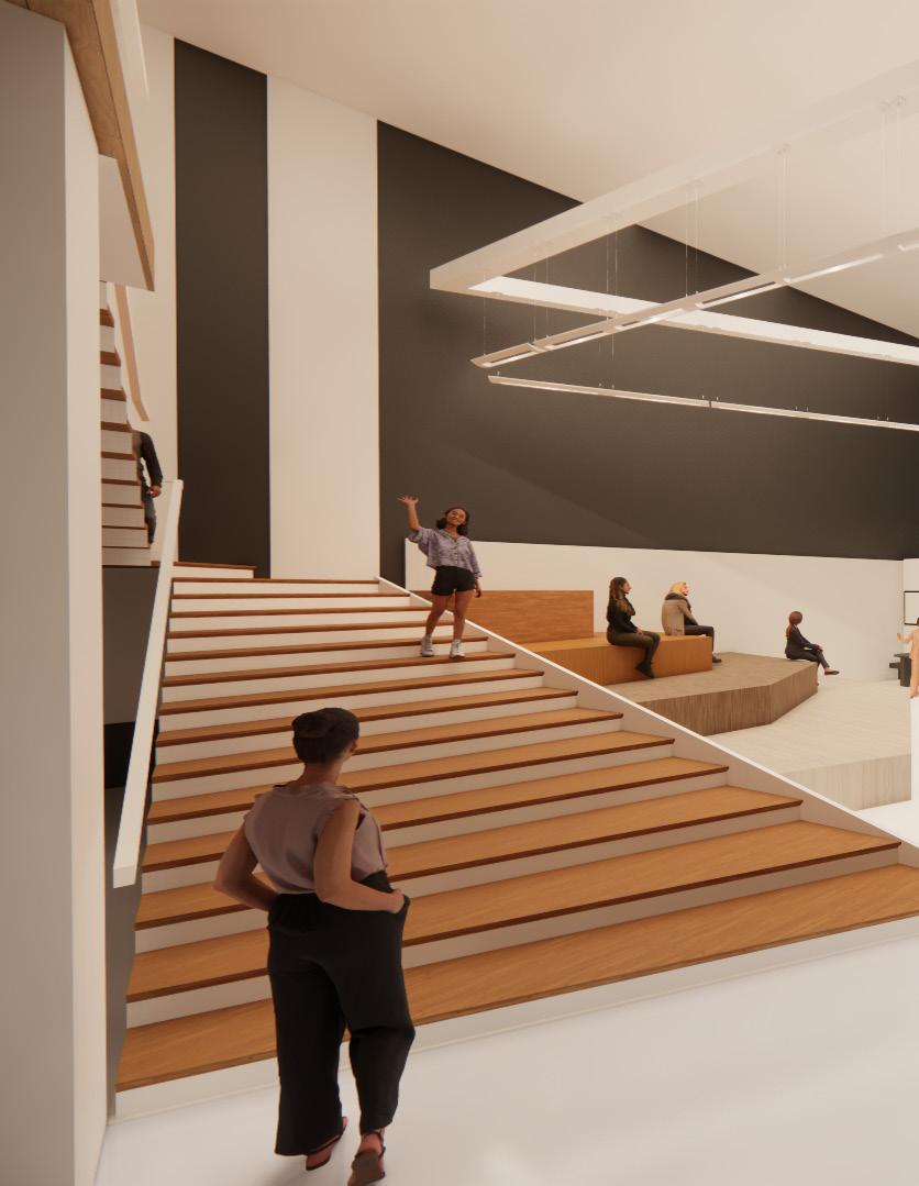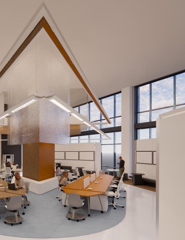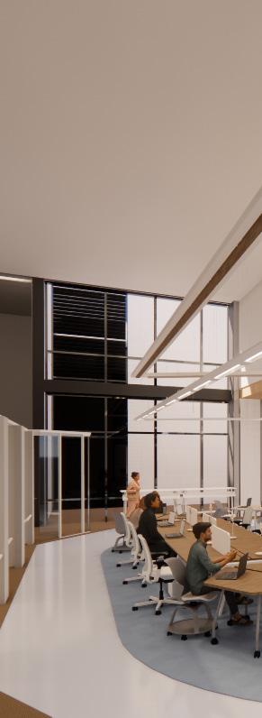Elevation Elevation Elevation 2 3 7 4 8 6 5 1 5 Floor Plan NTS 2 3 1 2 3 1. Dining Area 2. Lounge Area Durable materials for high density movement places. Collection FLOOR PLAN With Materiality 3. Brainstorm Area 4. Makerspace 7. Staff Office 8. Reception Desk 1