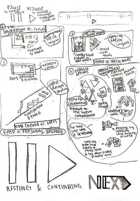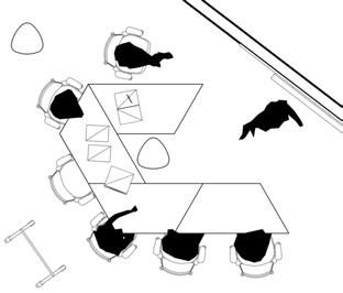 COLLABORATION Collaboration and openness are highly valued in the studio. The space is meant to be flexible, but additional space is required for the mobile furniture to work effectively. PRIVACY Privacy for acoustic purposes and the need for personal conference rooms. COLLABORATION Collaboration and openness are highly valued in the studio. The space is meant to be flexible, but additional space is required for the mobile furniture to work effectively. PRIVACY Privacy for acoustic purposes and the need for personal conference rooms.