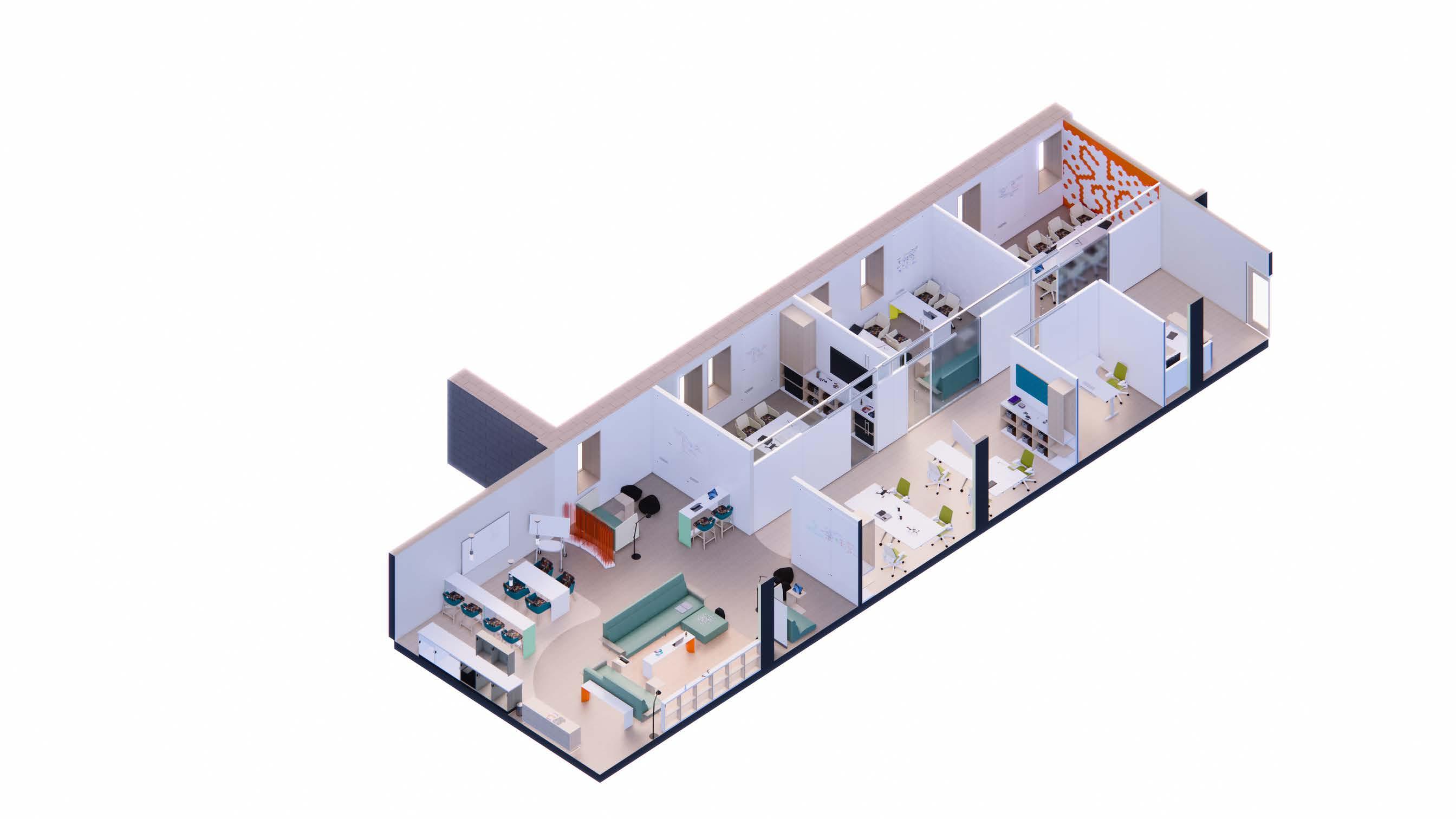 Based on the findings, the new fusion studio space focuses on the 4 c’s: Class, Communicate, Create, Collaborate