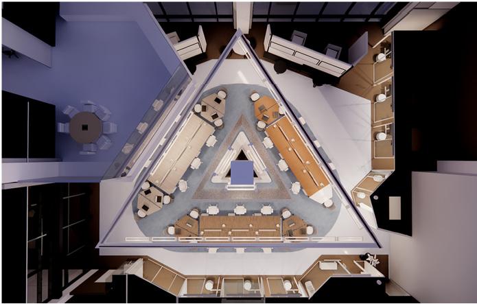 Managers’ offices, brainstorm boards, resource centers, phone booth at a close proximity for easier access. Design library is visible from Mezzanine.