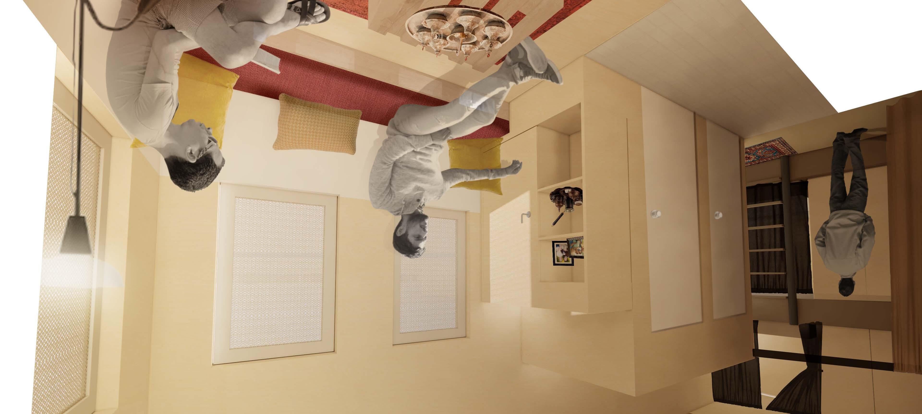 Acoustic wall panels and bright colors. Various objects allow personalizaion in every room.