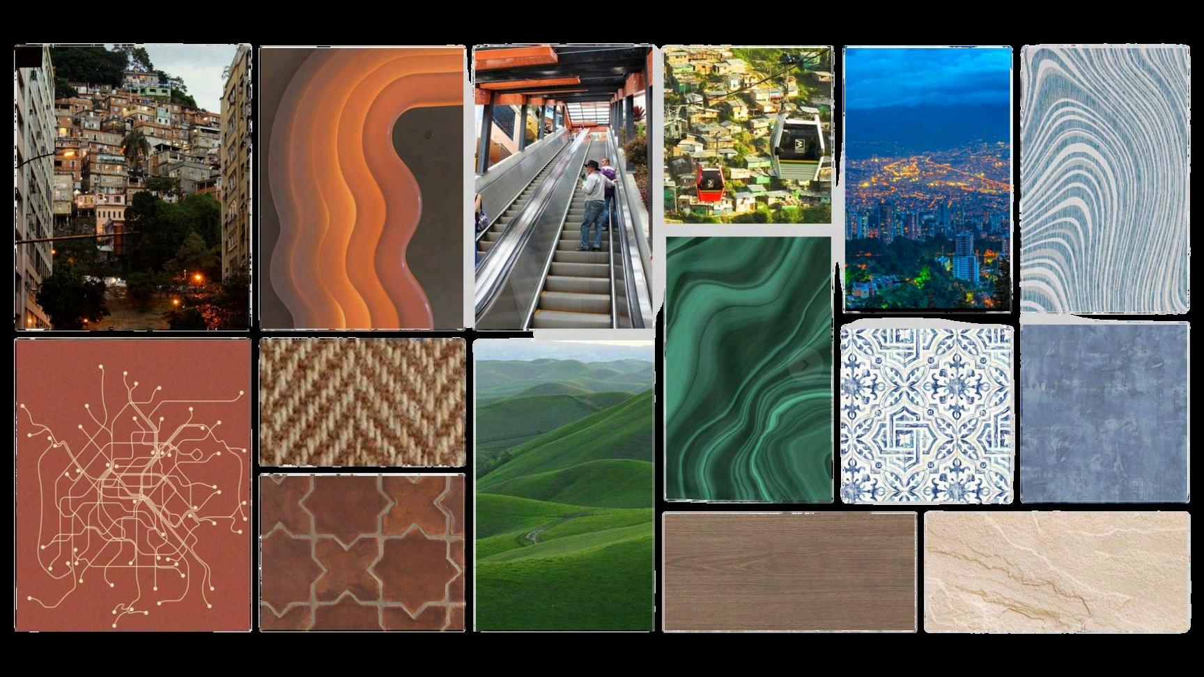 The shapes and forms of the space communicate the complexity and beauty behind Medellin’s landscape. The customized fixtures on the wall mimic the abstraction of how the houses on the hills look as though they’re stacked one on top of the other.