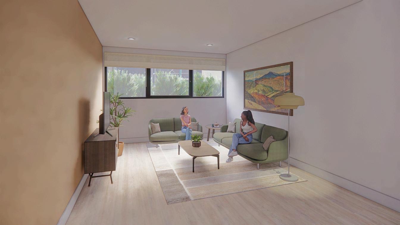 The residents hold the conviction that fostering a sense of community and robust programming are key to nurturing support among inhabitants. The establishment of a well-structured program is instrumental in promoting mental wellness and welfare within this setting. Our strategy involves designing dormitory-style apartments that accentuate the essence of communal living.