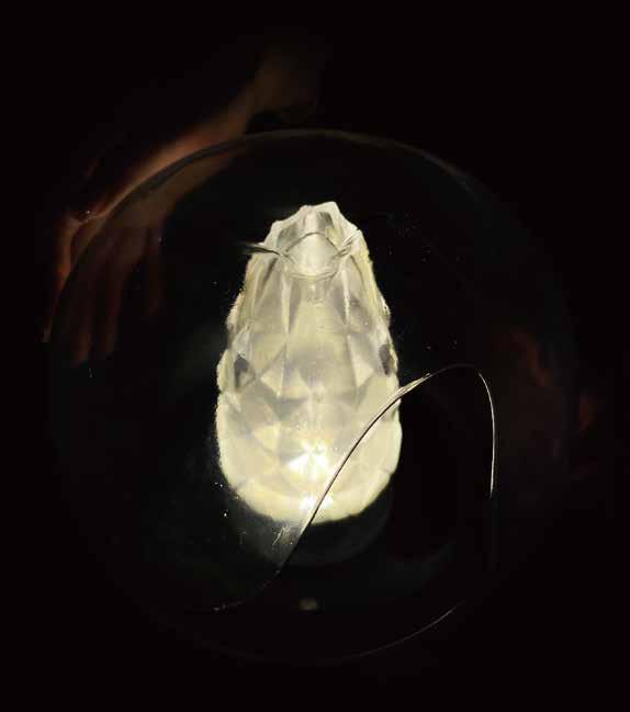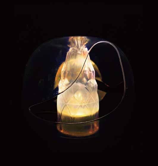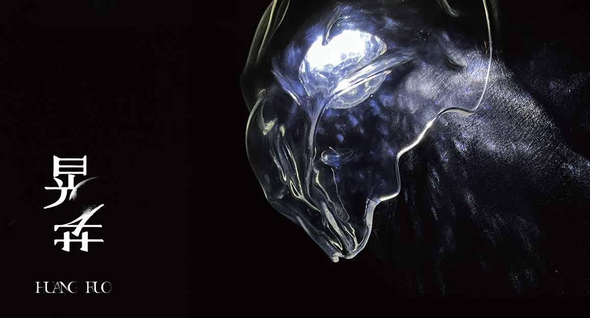 感受 。 霧面金屬 以 古銅之色 襯 托透明川 流 玻璃折 射