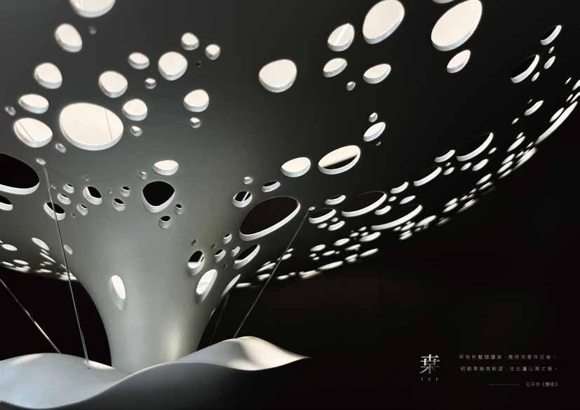 以吊 燈 詮釋墮葉 從 上灑落至 地 之感,使 用 者直覺 操