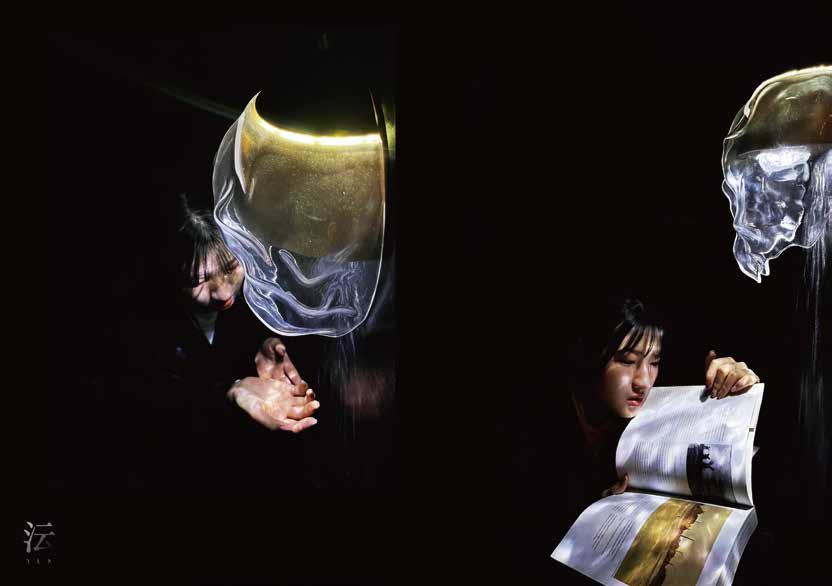 象, 用 光折射在 水 面的波光 粼 粼來詮釋 動 而靜的 煙