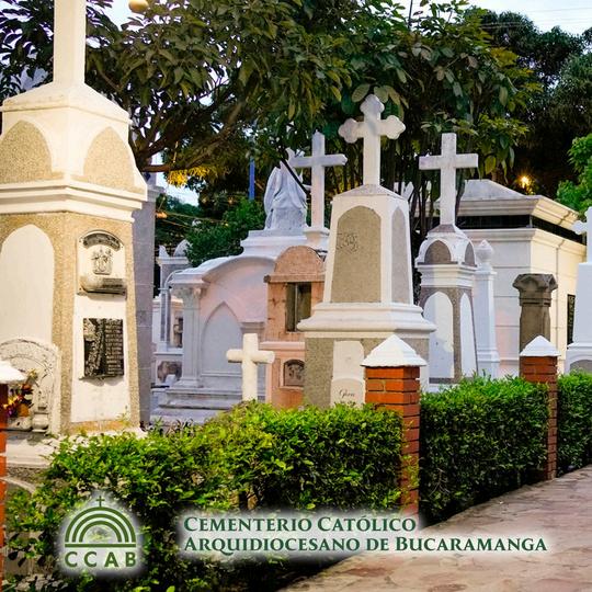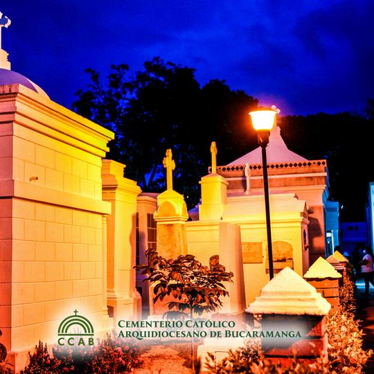 Los colores que dominan el paisaje del Cementerio Católico Arquidiocesano de Bucaramanga son sobrios y atemporales: el blanco resplandeciente del mármol, el crema suave de la piedra caliza y el terracota cálido de las tejas se combinan para crear una paleta que evoca la serenidad y la trascendencia. Columnas dóricas y jónicas y arcos de medio punto dan un toque distintiva del estilo neoclásico