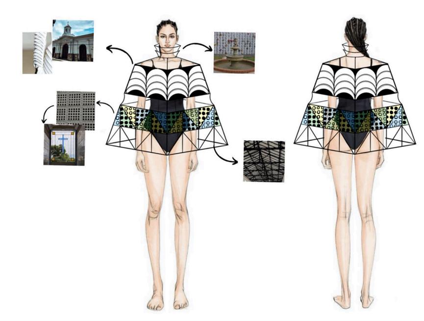 El Cementerio Católico de Bucaramanga, examina cómo las texturas y los colores de la arquitectura colonial pueden ser reinterpretados en el diseño de moda para crear prendas envolventes únicas y evocativas.