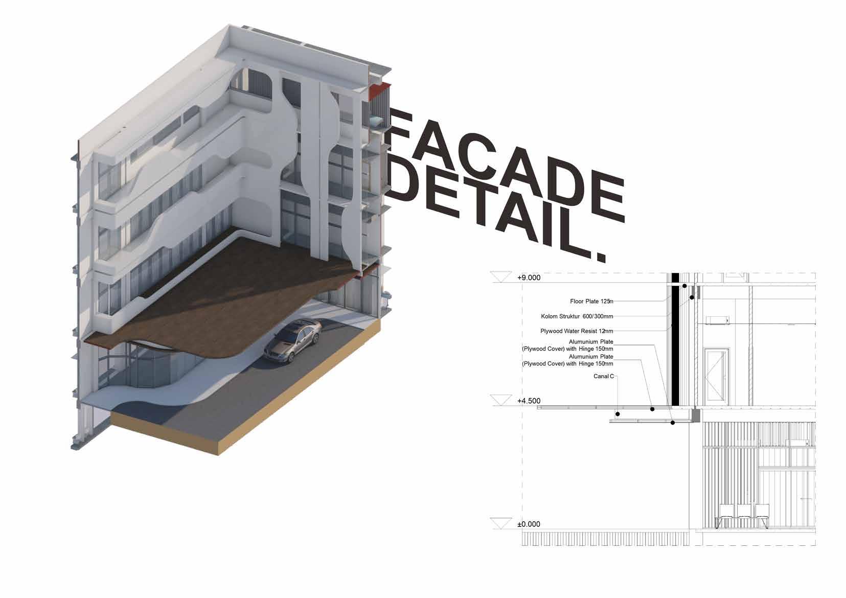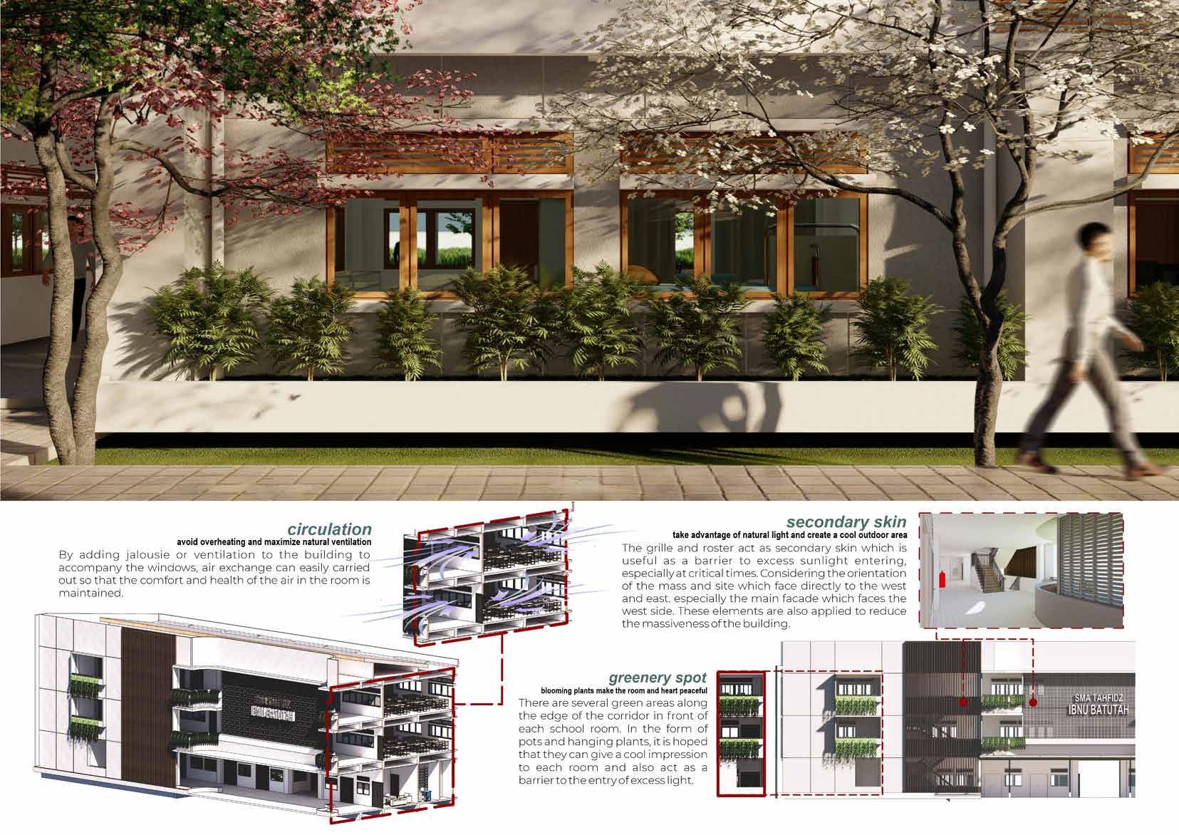 Furthermore, the mass composition is shaped like kawung batik and responds to the direction of the wind circuladirection of the view of the building mass.