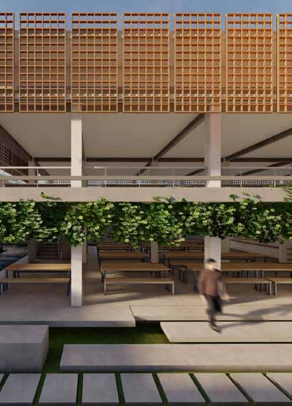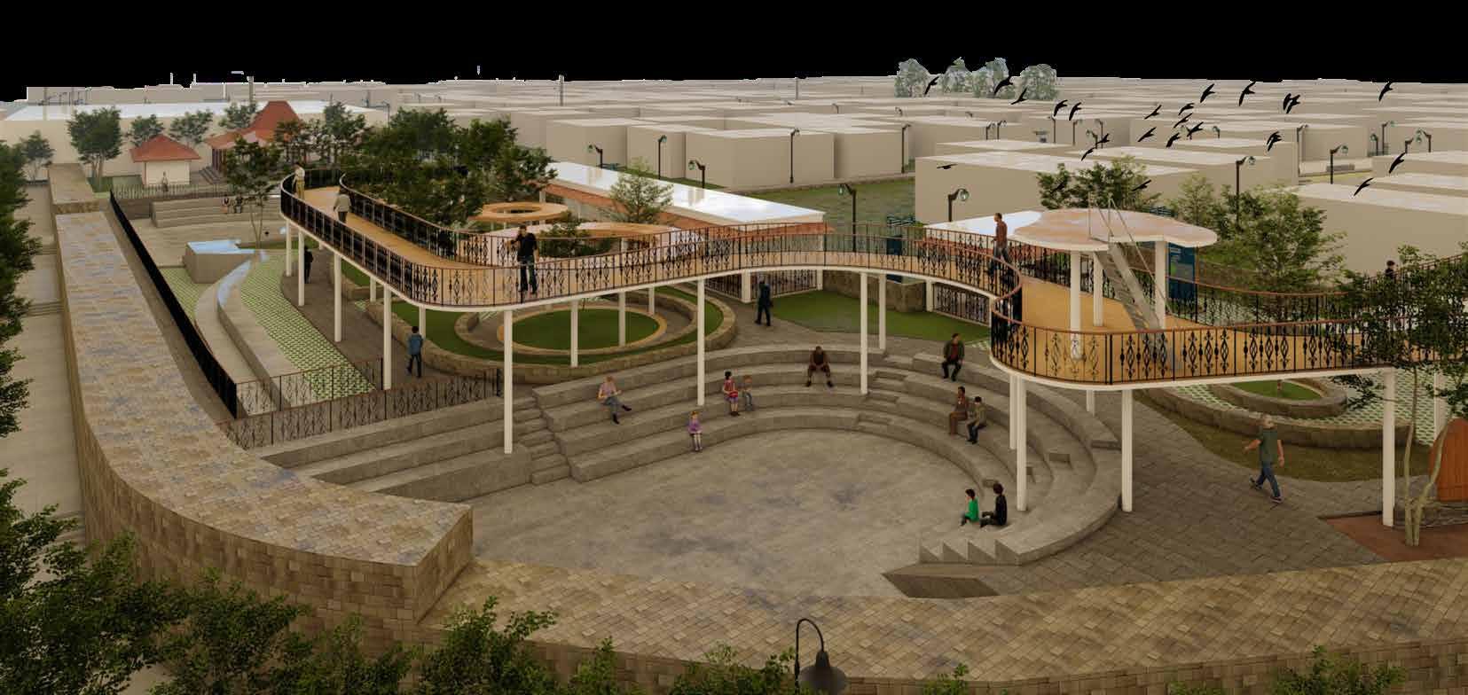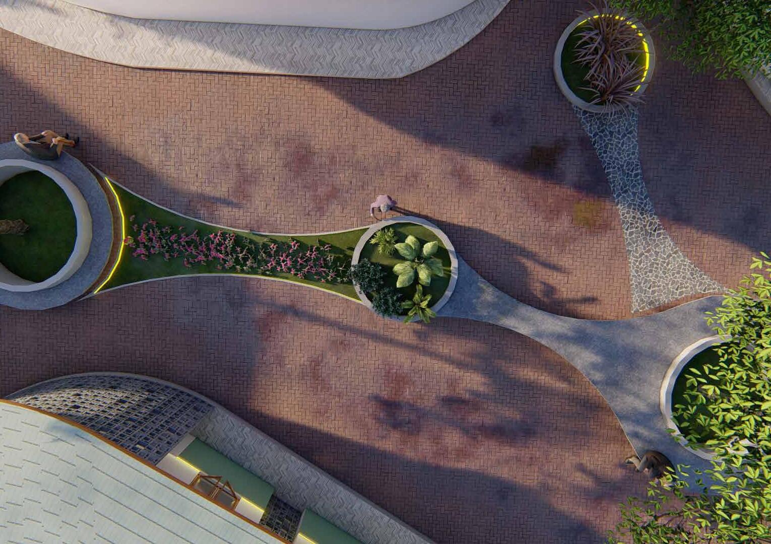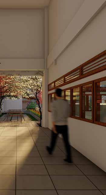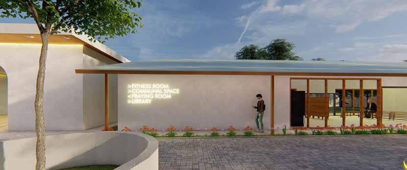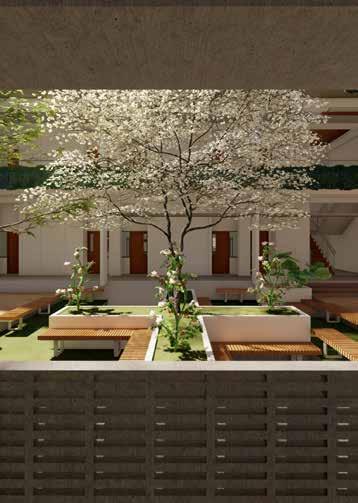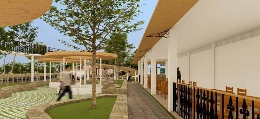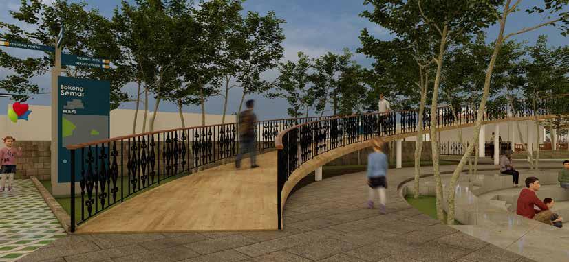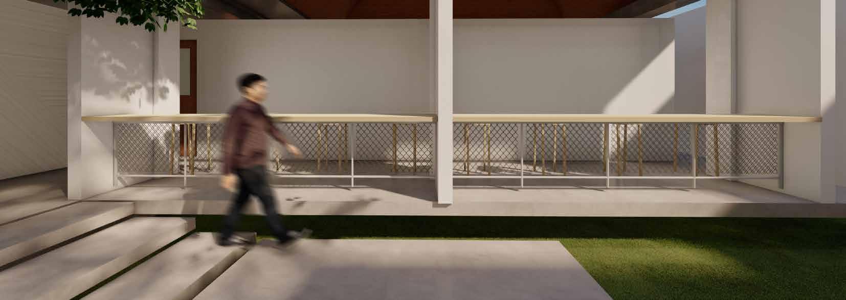 Boundaries between the mass is using for assembly point and also as the garden, the elder can do farming as they want, fill the flower, feel the area without anxious, there are had seating area, we do the same pattern as the pot line but making the seat zone with different elevation which is floating the garden.