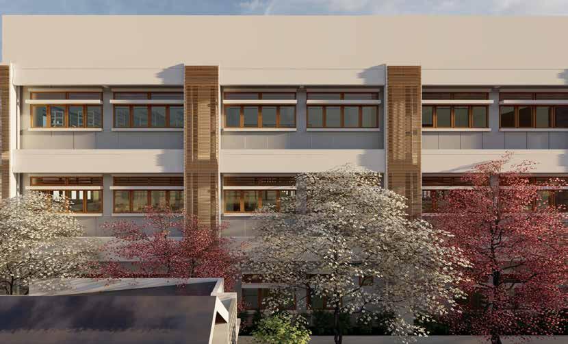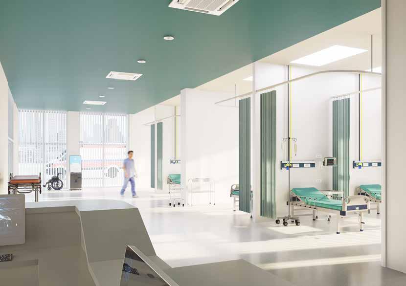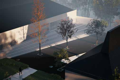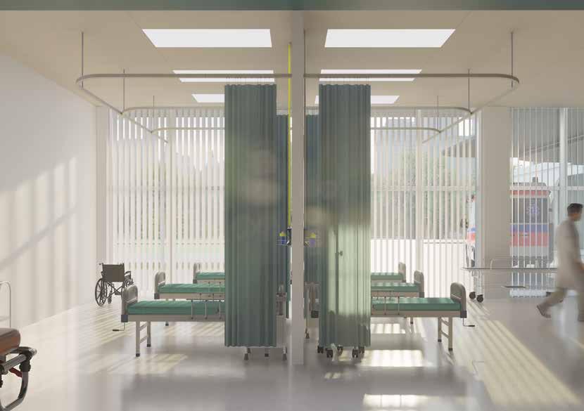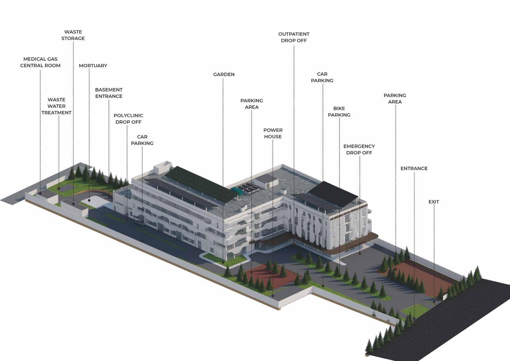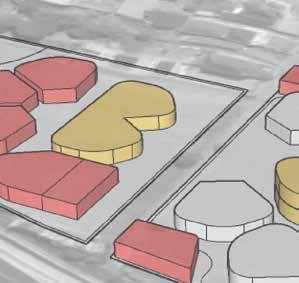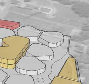 the mass of the building is increased according to space requirements, in the illustration beside the mass it is pulled up into as clinic building.