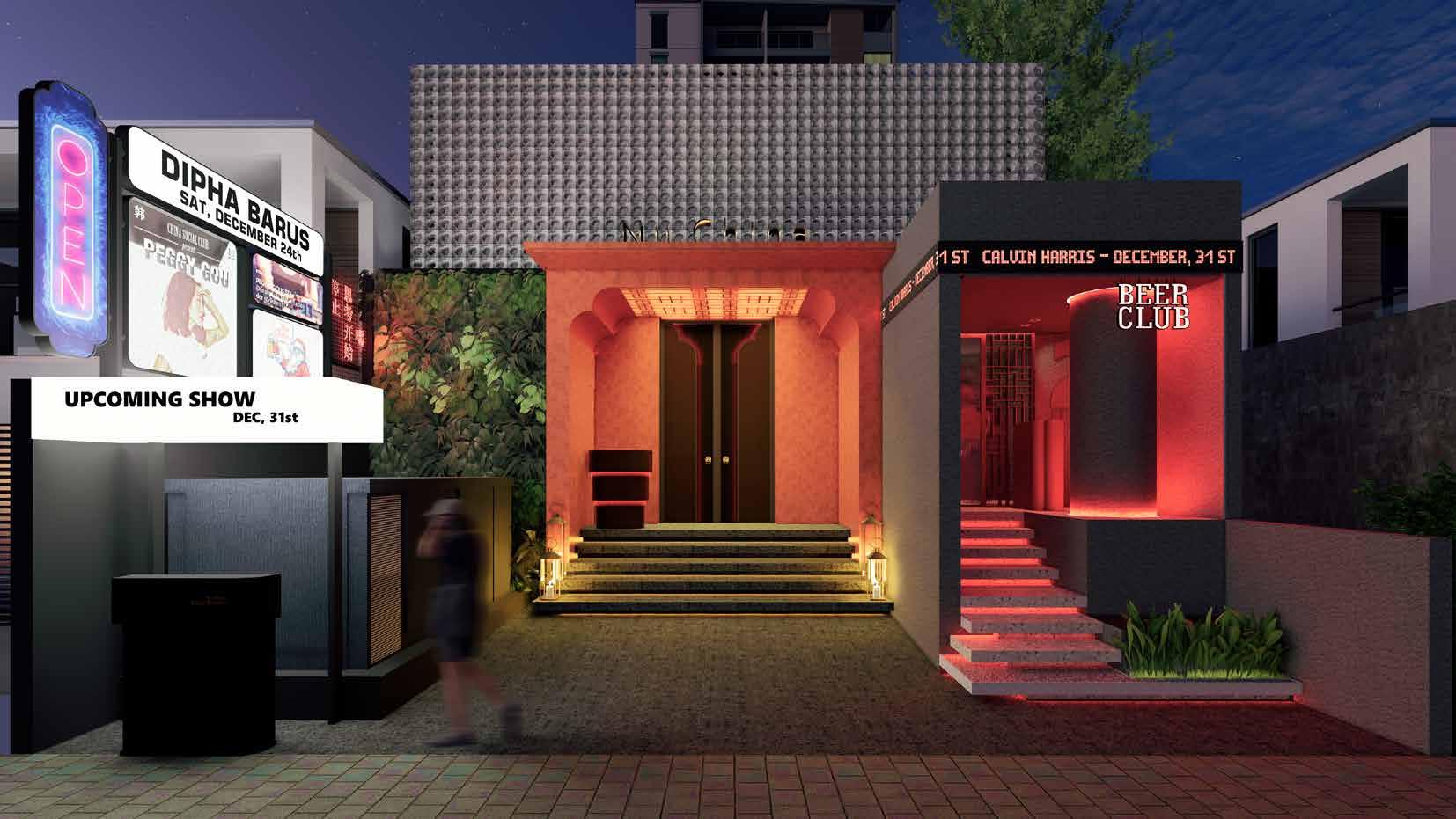 The project is located in Kemang Raya, South Jakarta, Indonesia. It is a complete renovation of a Chinese bar and lounge, we tried to rebrand starting from the facade. The new facade tries to combine past and future into an old Chinese theme with a touch of electric running text as a billboard to represent the present.