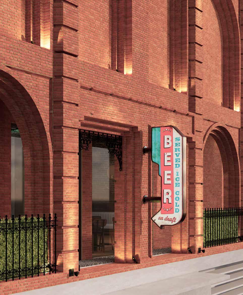 For us, it is interesting to understand the project as an organism that will exist within another organism. This project is located on the 2nd & 3rd floors of one building, the 1st floor is owned by another client with the function of a furniture showroom and food and beverage tenant. In this way, we tried to create a bar facade with materials that contrast with the surrounding context. Something new is coming to the city, a strange shape that attracts the attention of the locals, creating a sense of provocation. Pedestrians, natural wood doors, large frames, black metal railings and terracotta bricks warmly welcome passersby at the main facade.