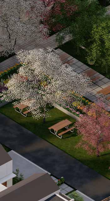 Vegetation is increased in the southern part of the site, this responds to noise and also pollution f rom vehicle exhaust so as to reduce air and sound pollution.