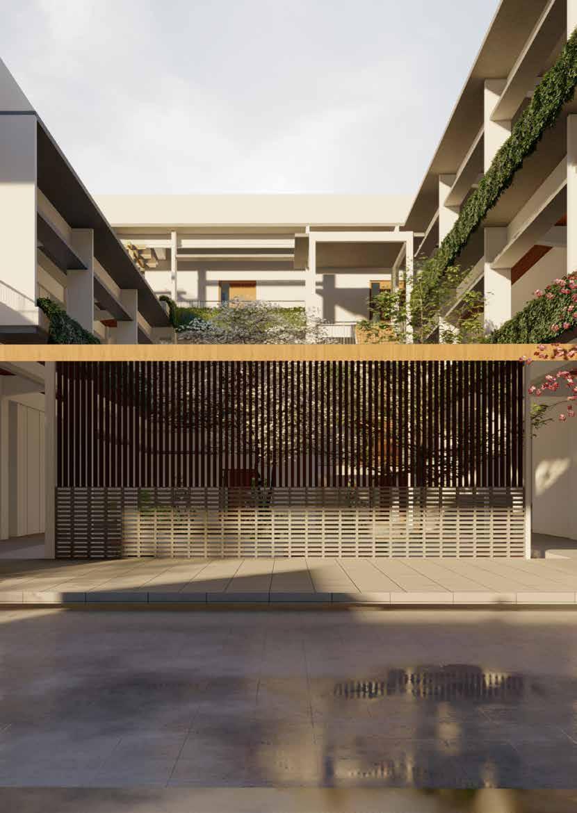 In total there are 2 main management zone, the entrance is on the east side, while the entrance to the senior living zone is on the west