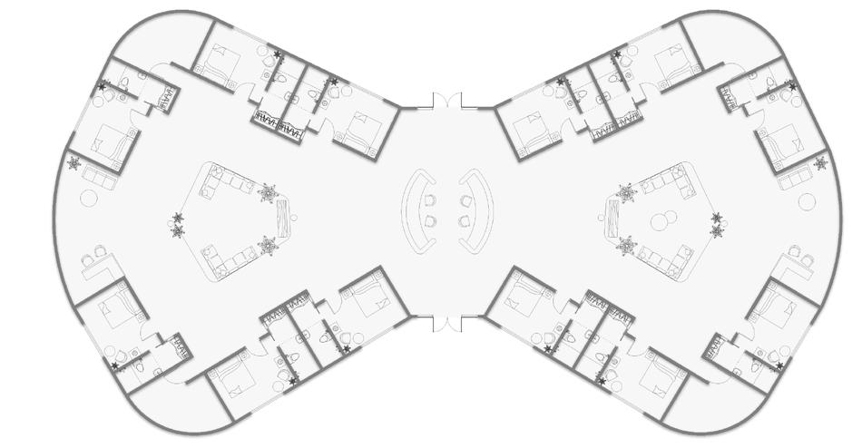 The top floor of the office building area is specifically for nurses who ‘serve’ for elderly facilities. These floors are also connected directly to the clinic area in the eastern part of the site