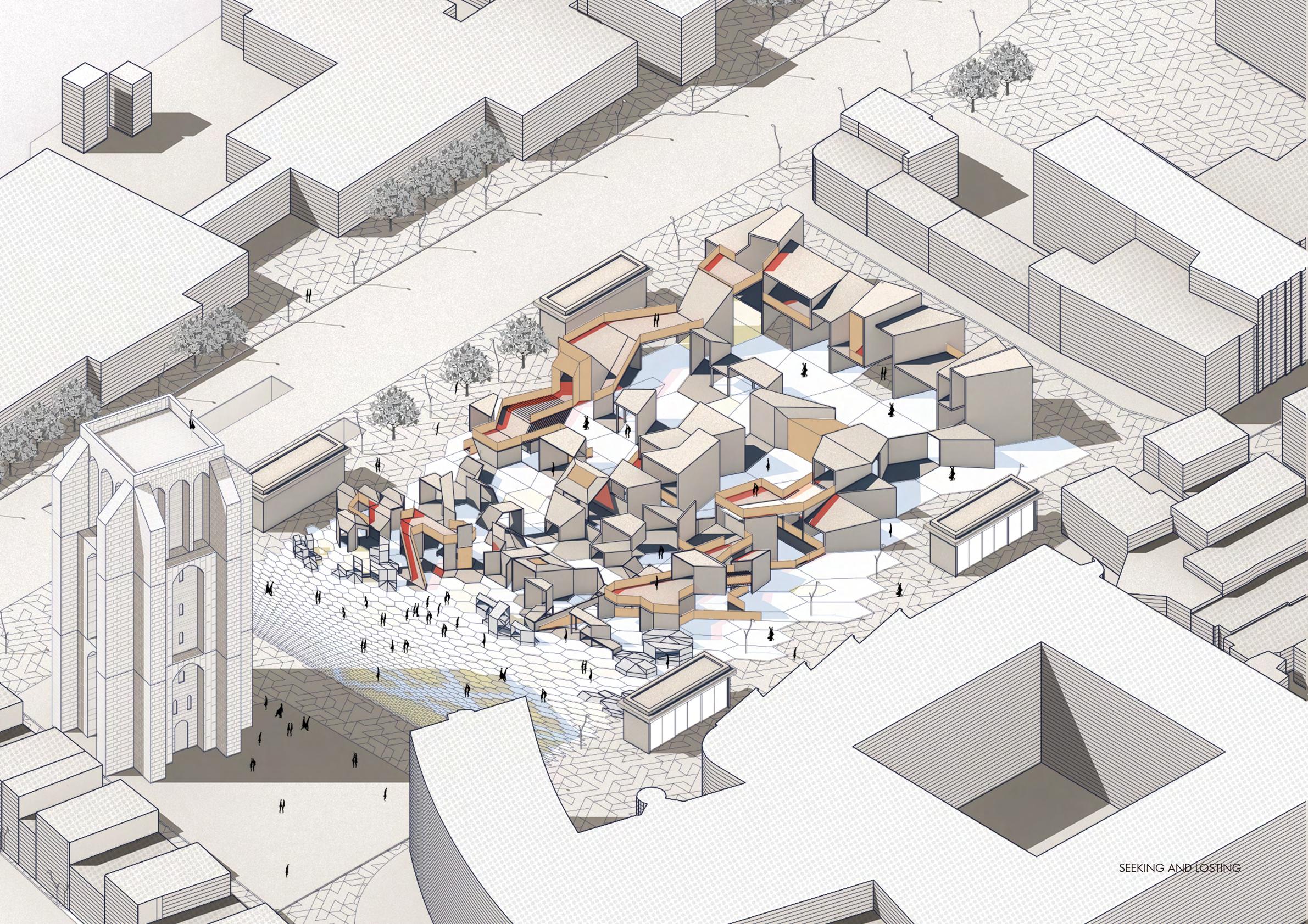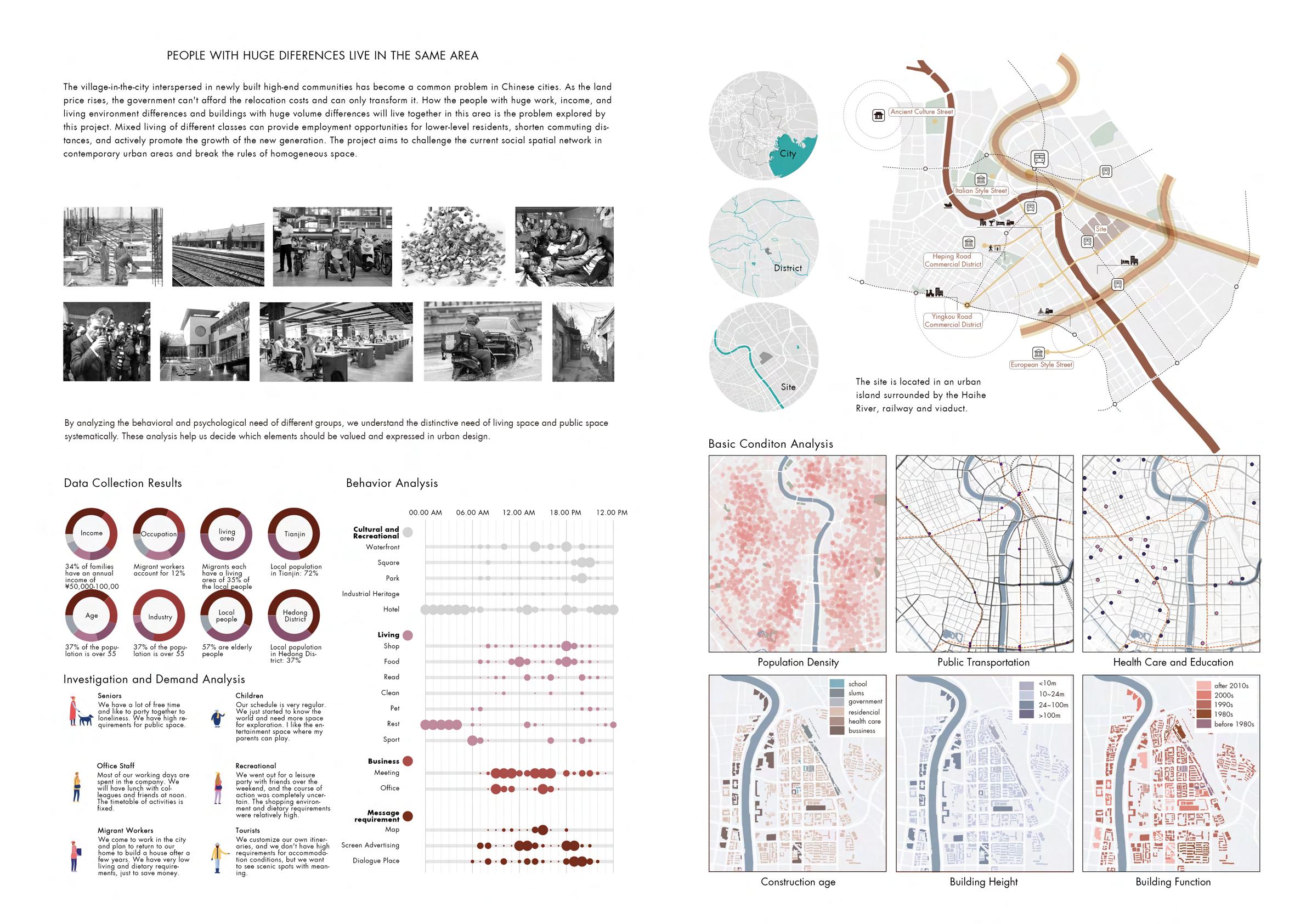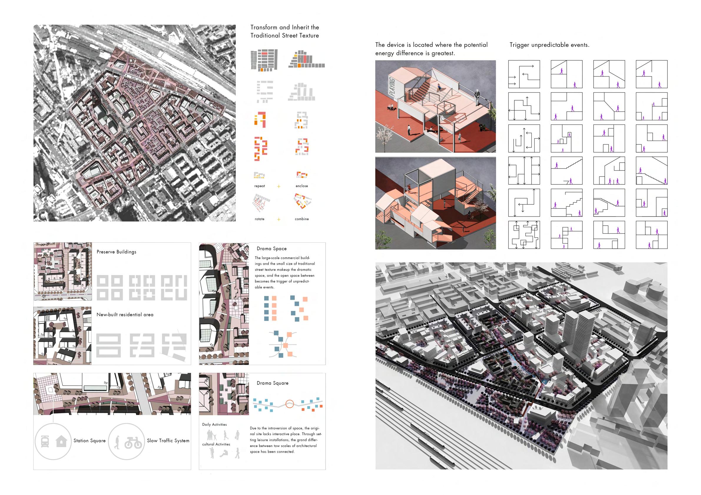 This project aims to challenge the current social spatial network in contemporary urban areas and break the rules of homogeneous space. Let people with huge differences in work, income, and living environment and buildings with huge differences in size coexist in this area.