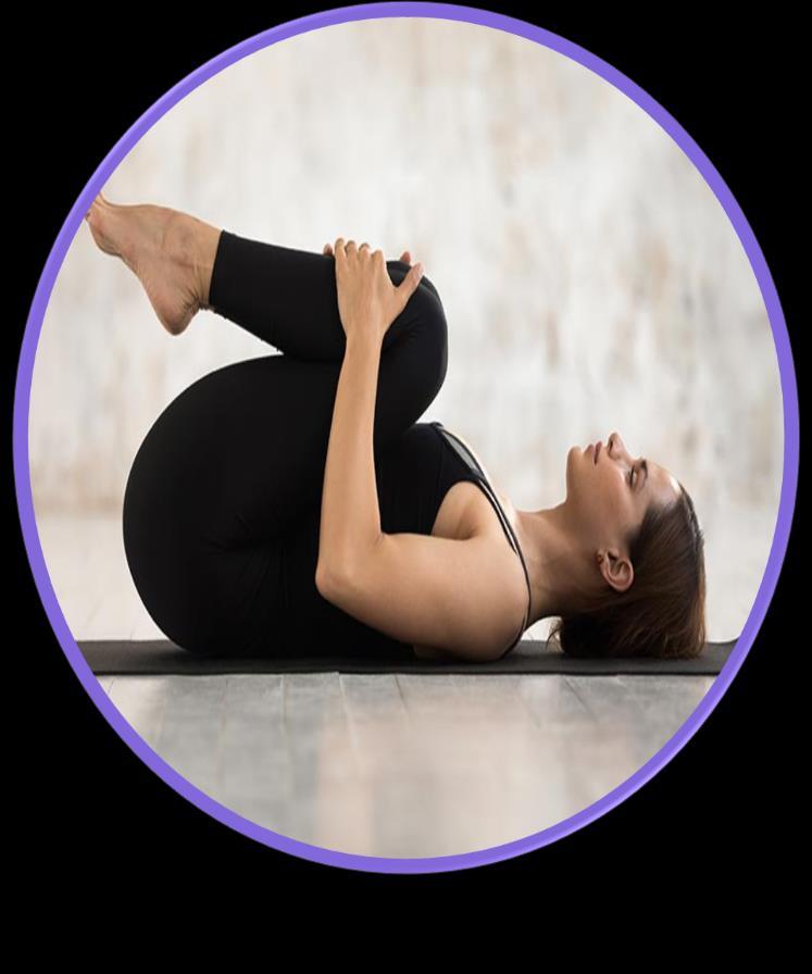 • Put your right ankle on the base of your left thigh, grab your left thigh, and bring it closer to your chest till you feel the stretch.