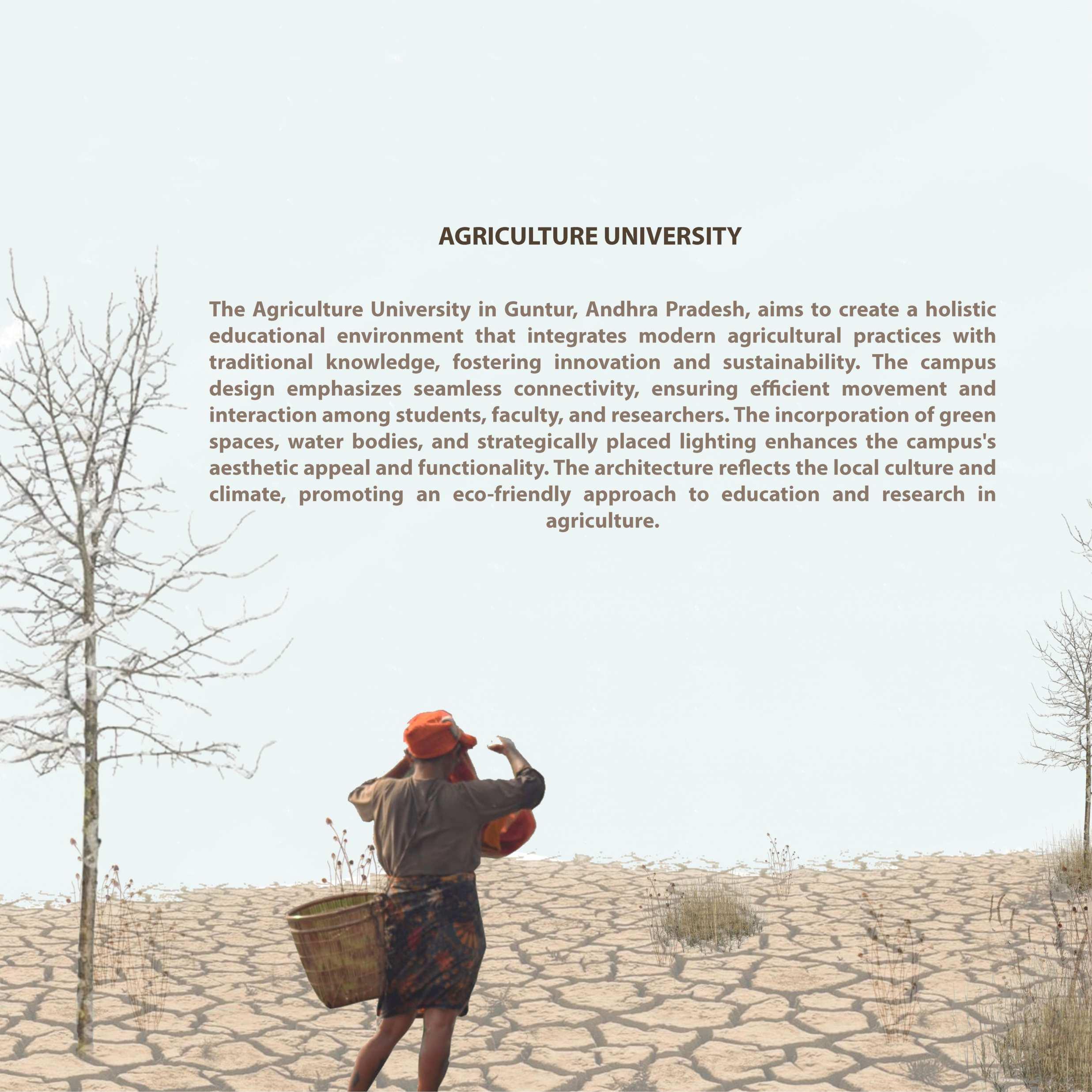 "My thesis portfolio explores the design of an Agriculture University, focusing on sustainable practices, spatial connectivity, and fostering an environment conducive to both learning and agricultural innovation. The project is grounded in the principles of critical regionalism, ensuring that the design is deeply connected to the local context and cultural heritage."