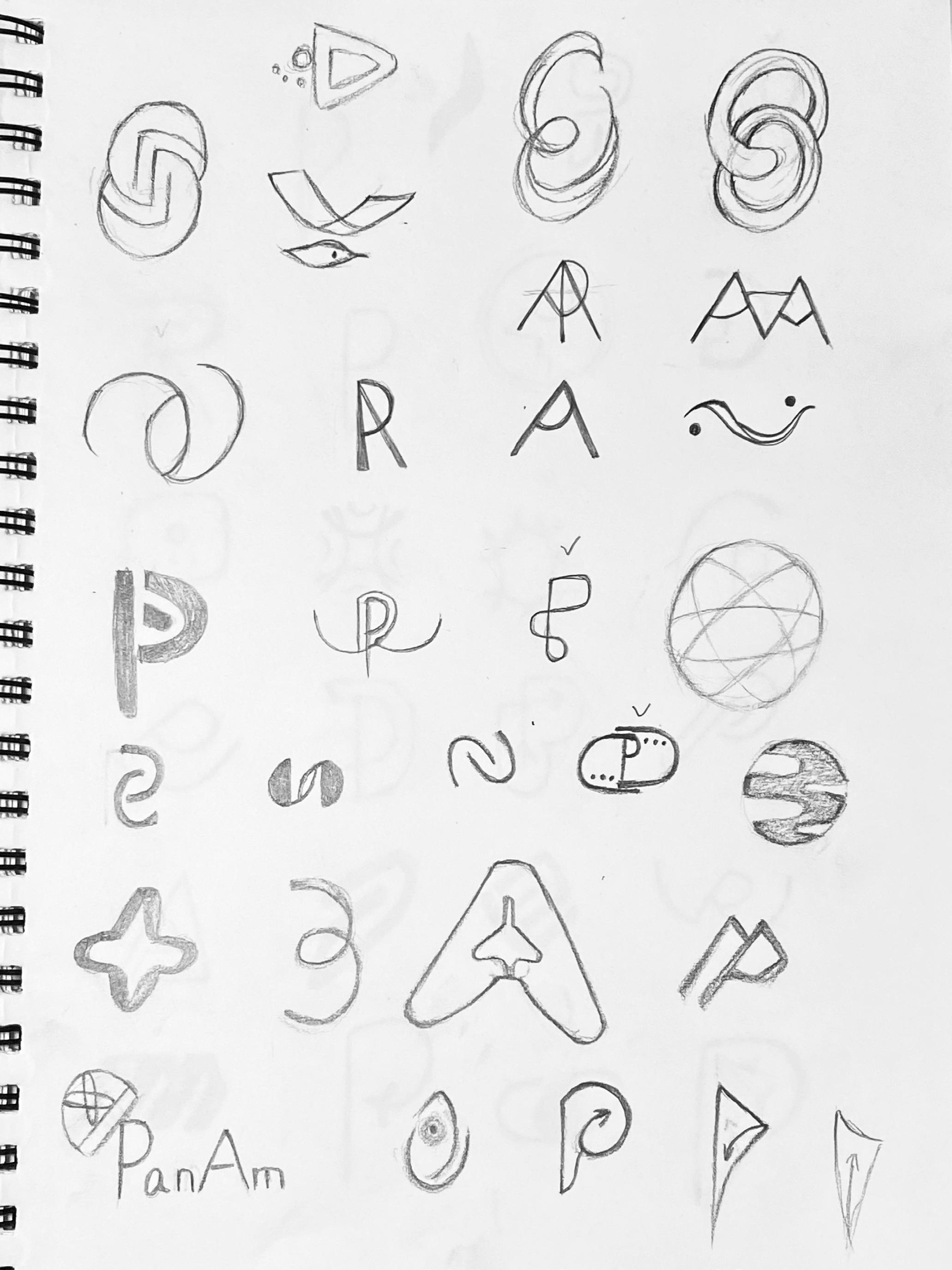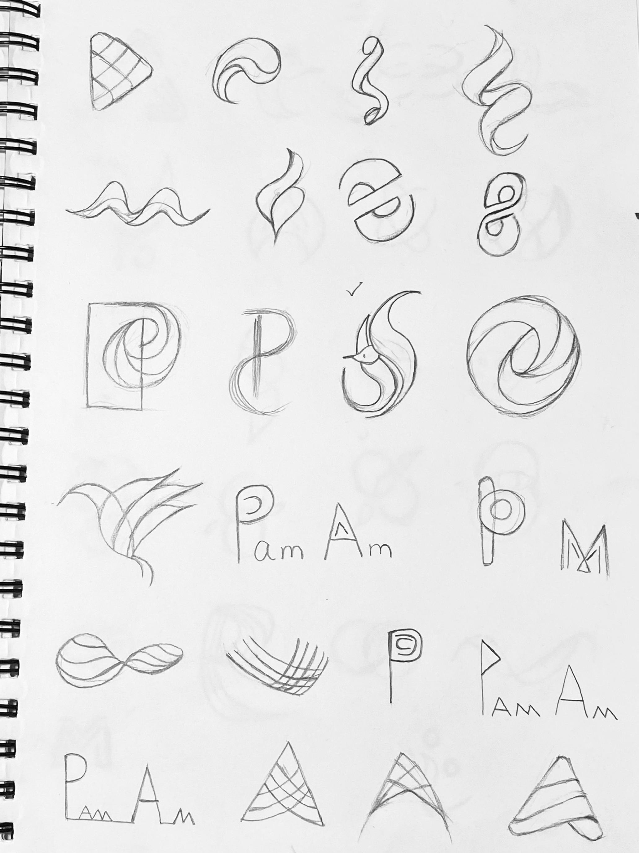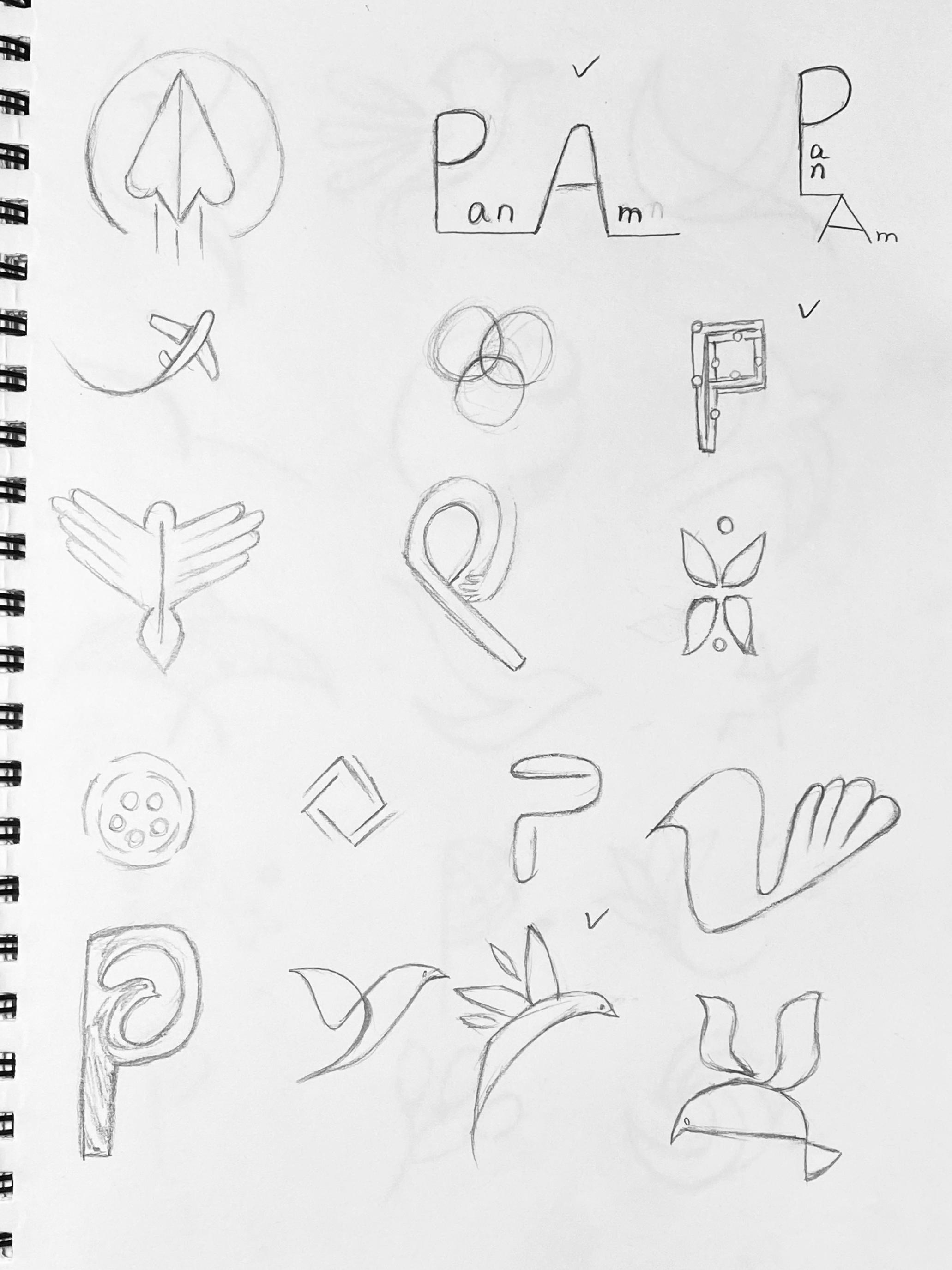 The following sketches expand on the best ideas from the previous round of sketching. These main ideas are refined and developed with several variations to find the version that will act as the best representation for Pan Am.