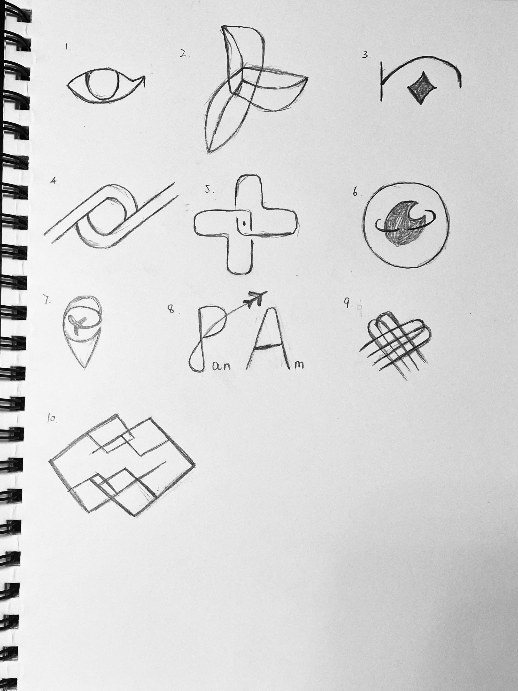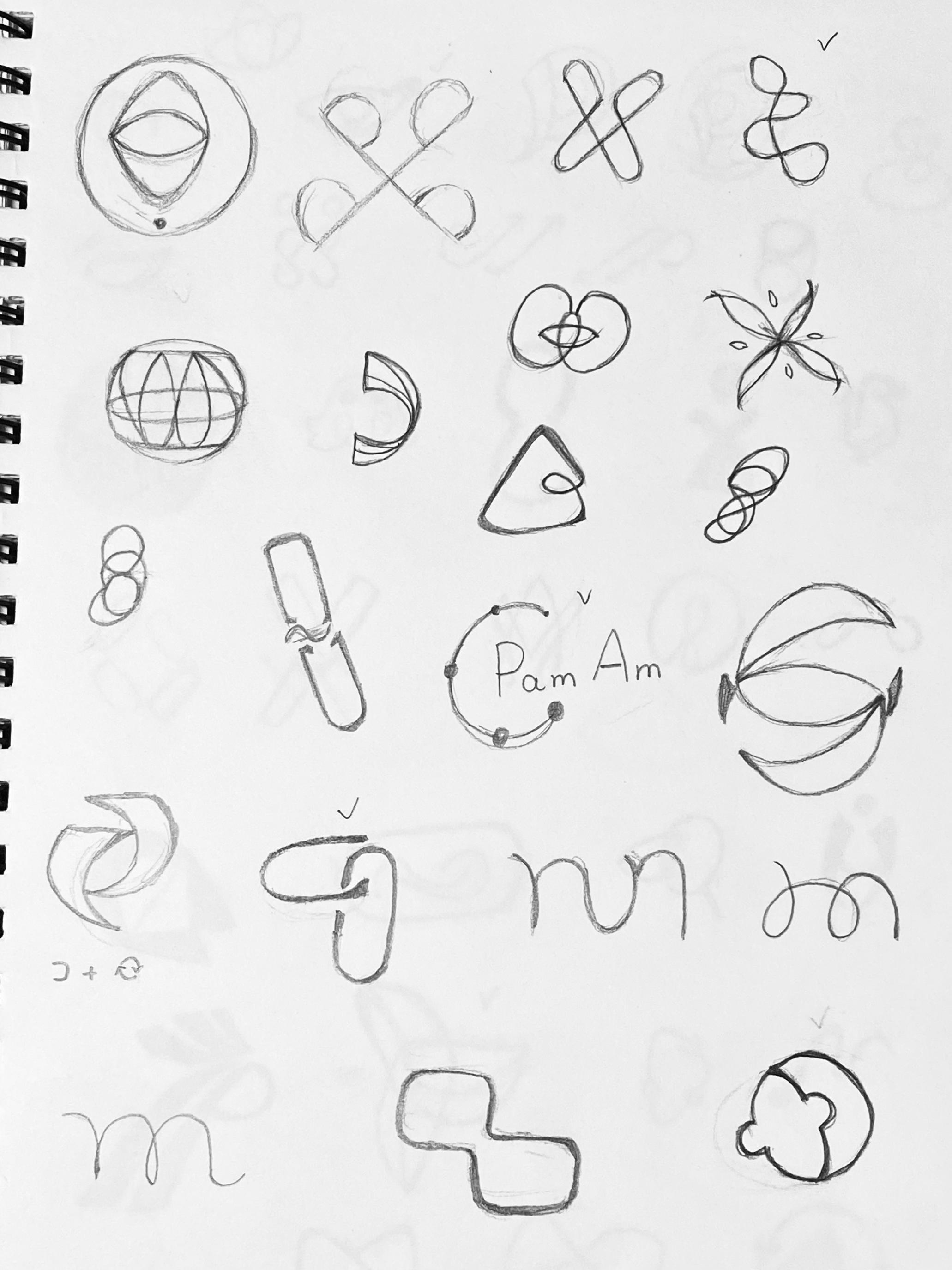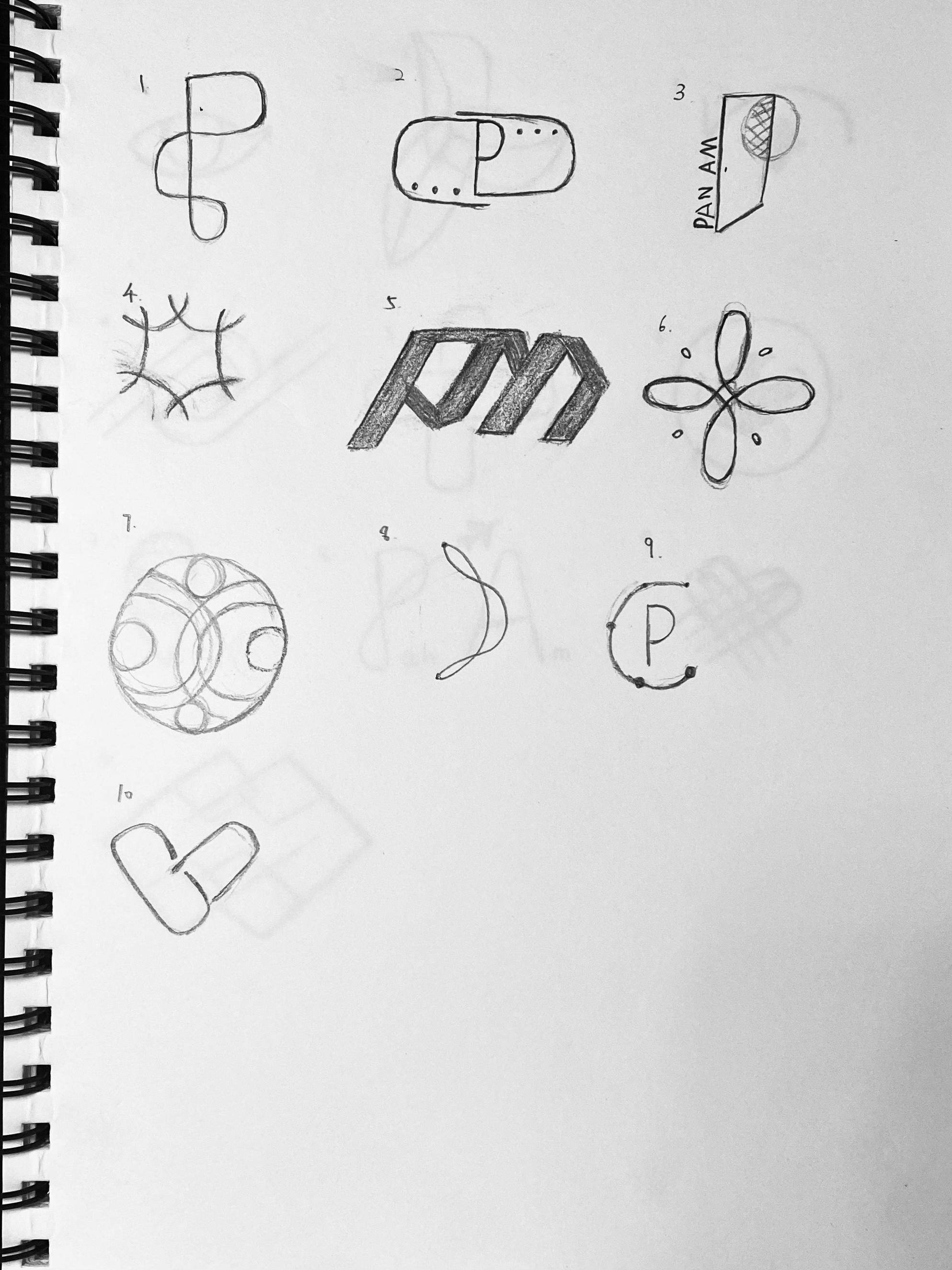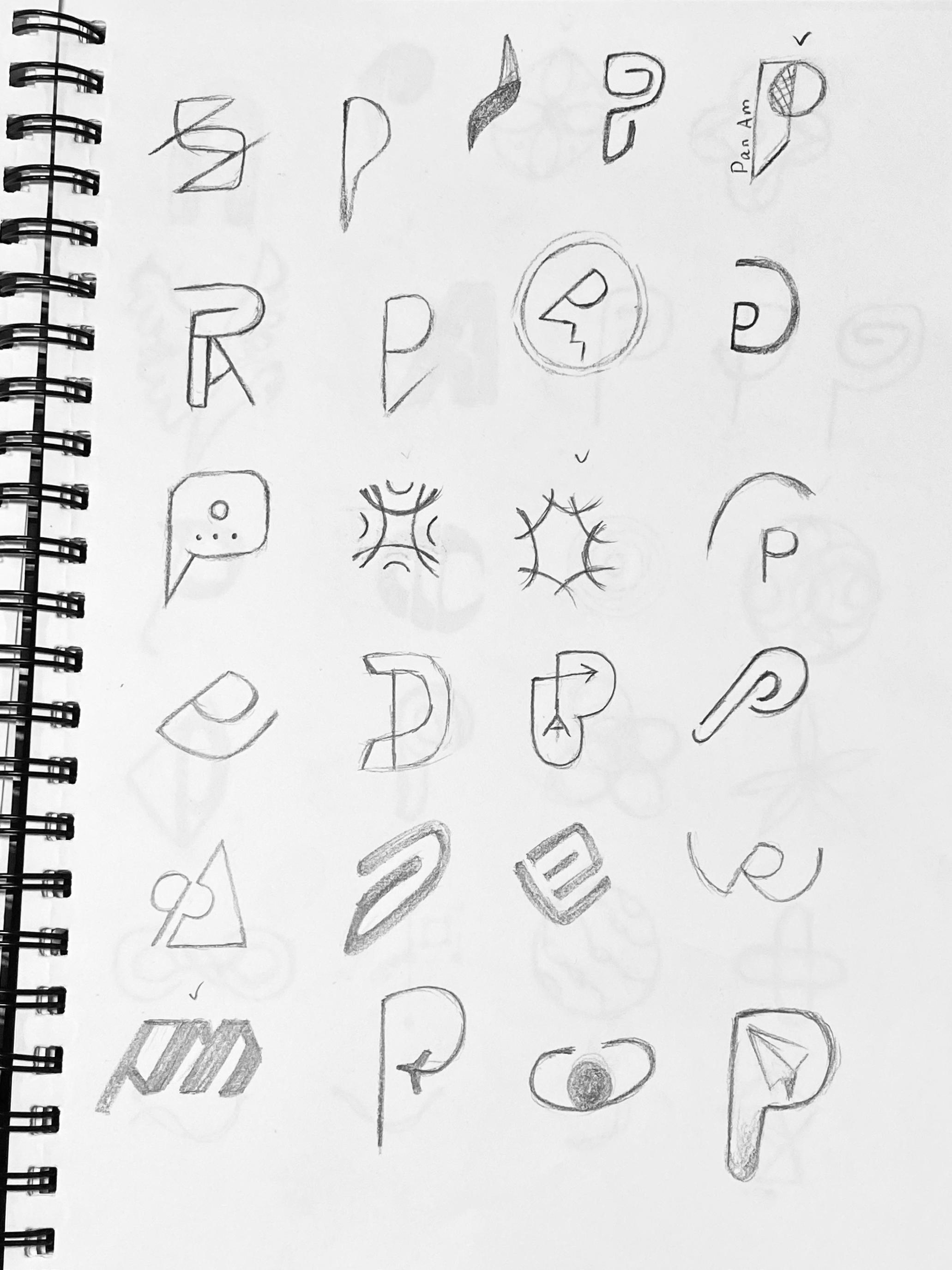 The following sketches expand on the best ideas from the previous round of sketching. These main ideas are refined and developed with several variations to find the version that will act as the best representation for Pan Am.