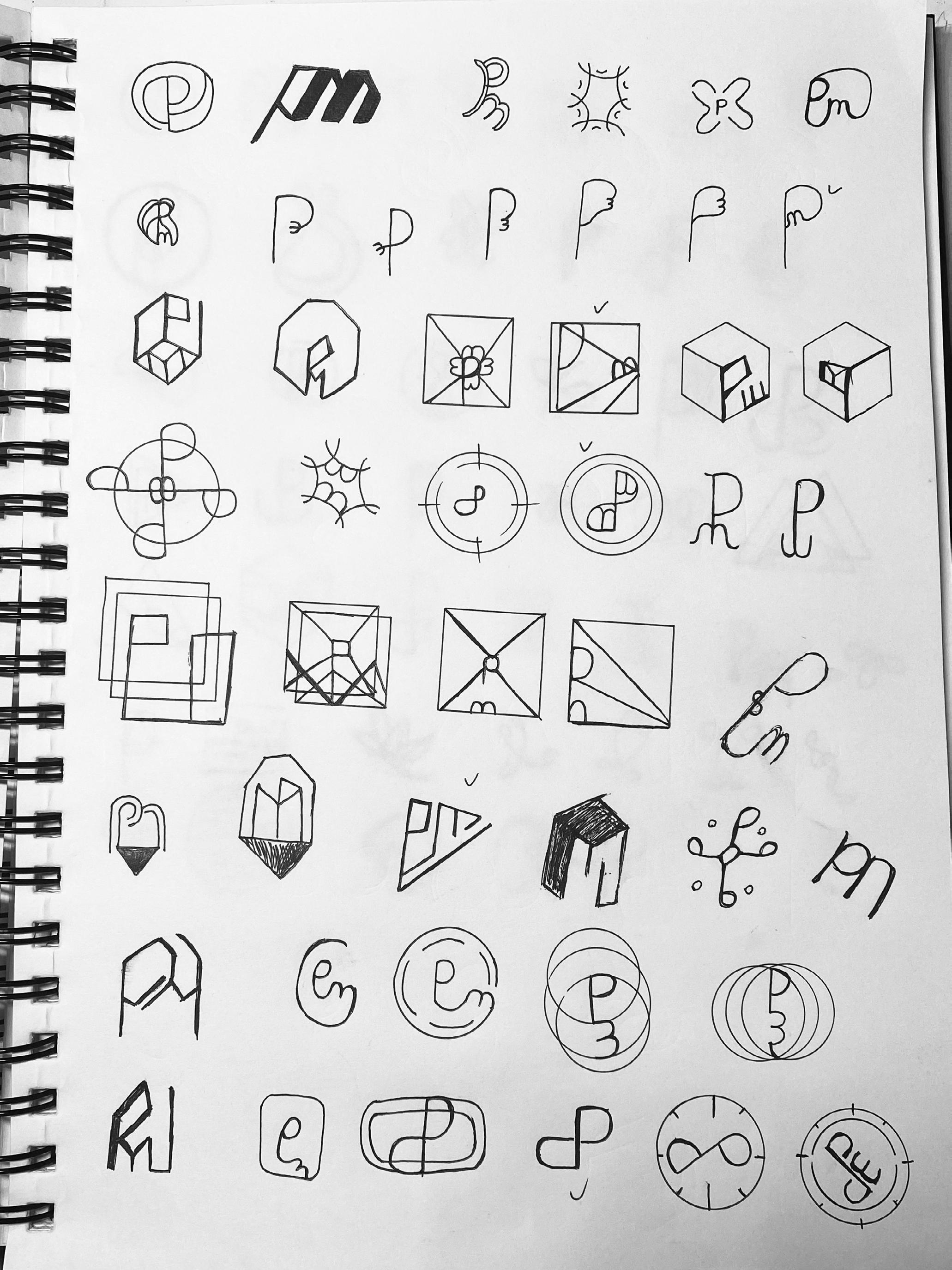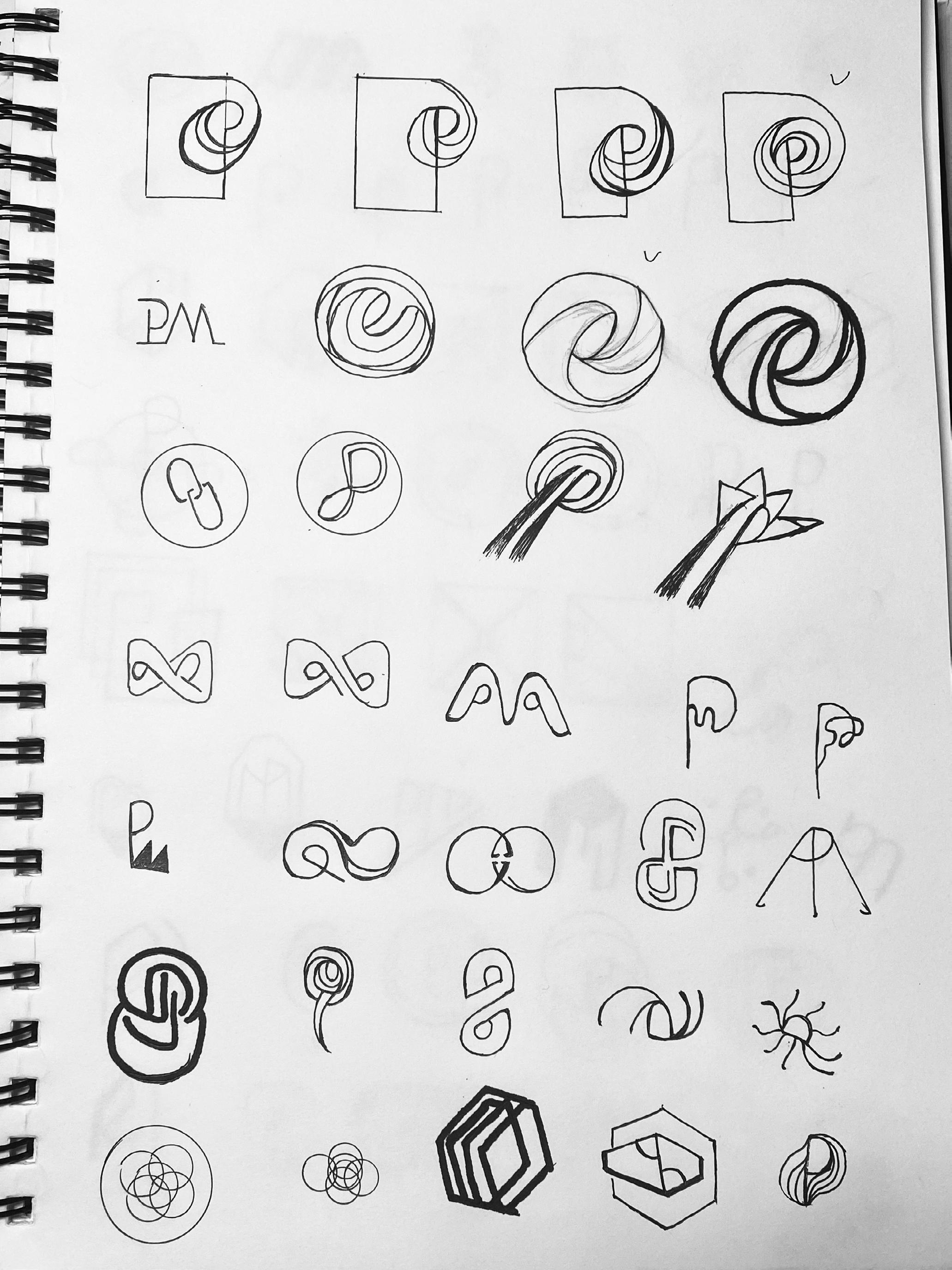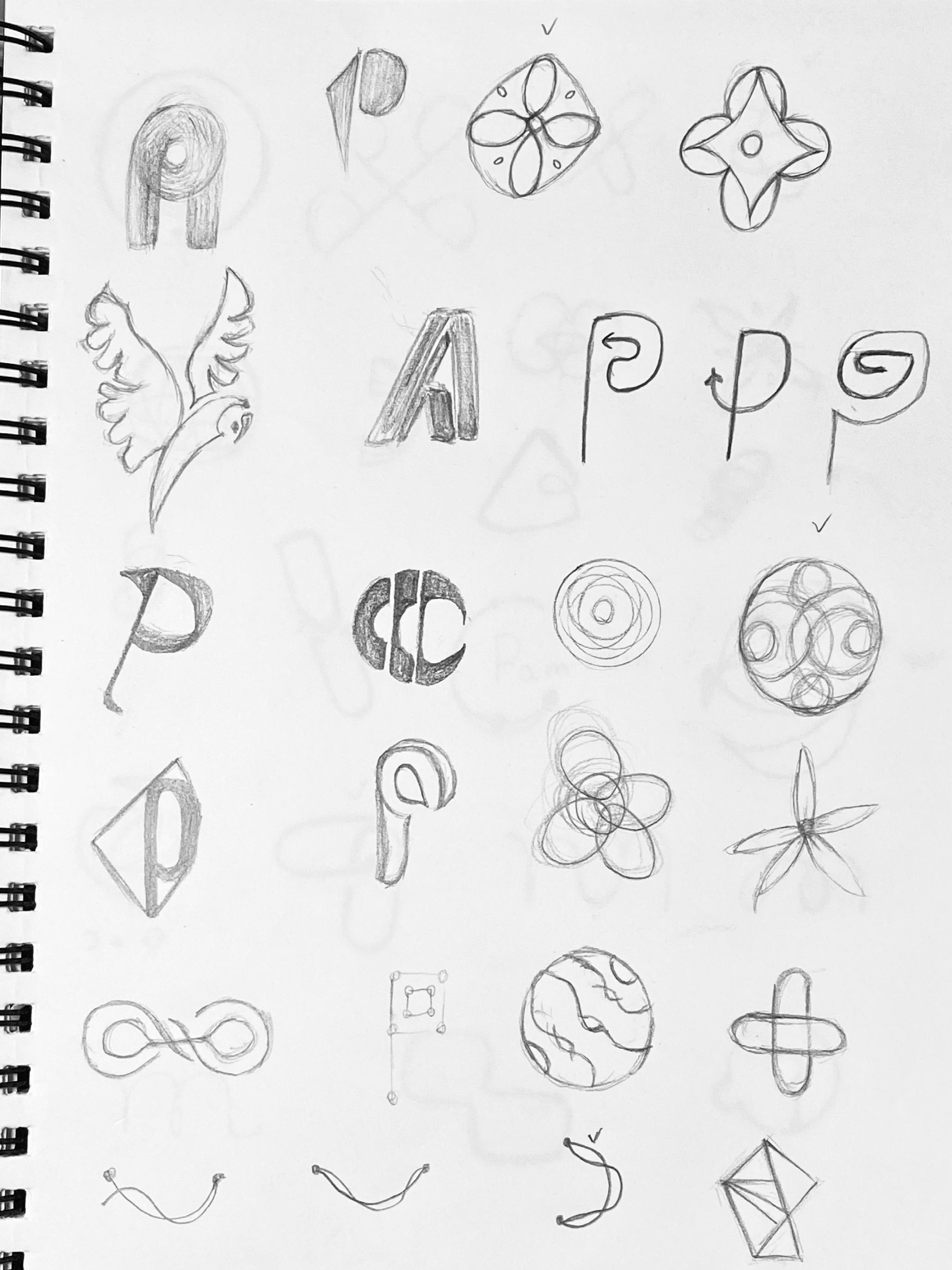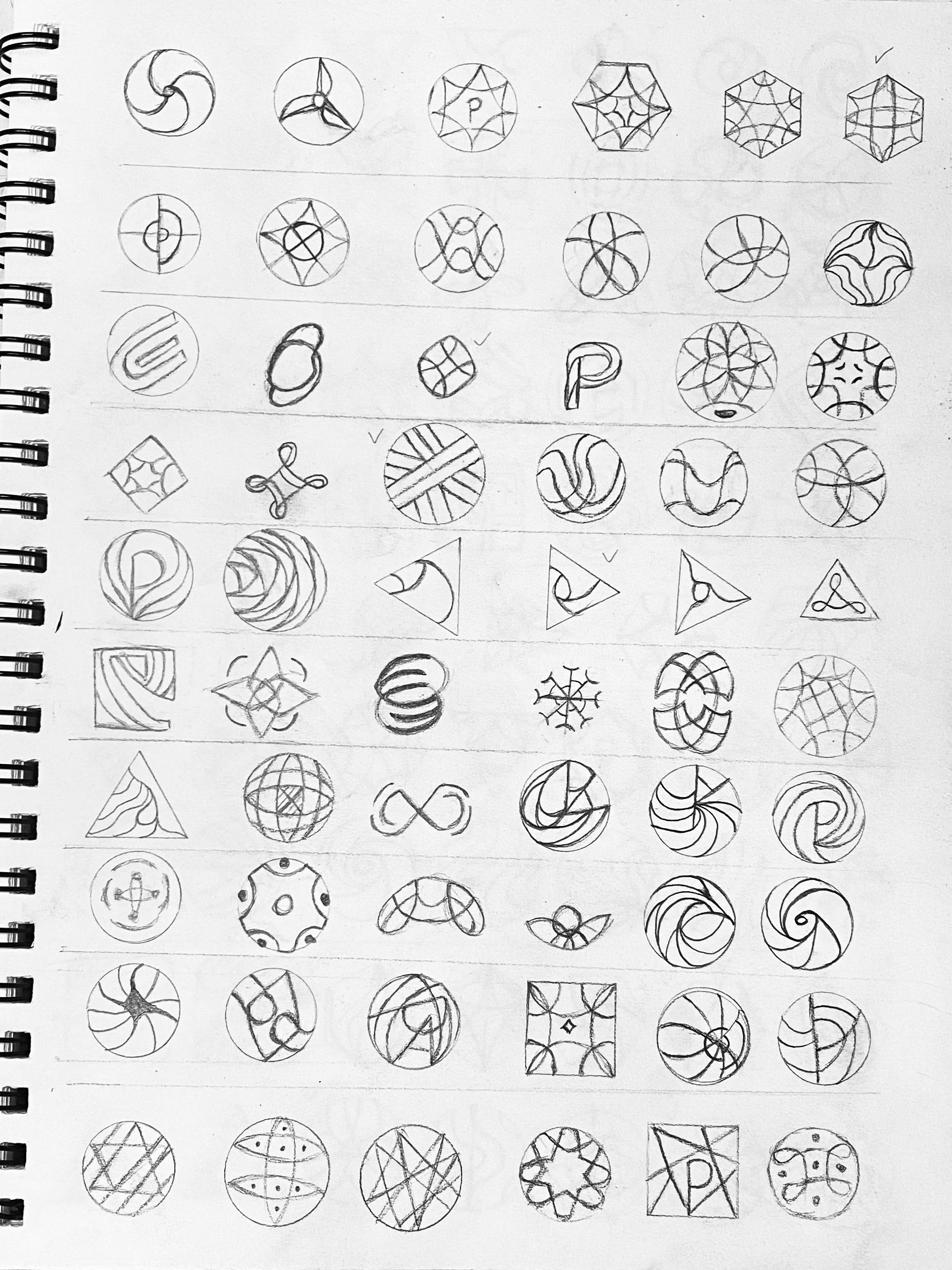 I explored the abstract P logotype, different circles, sharing link icons, and abstract shapes. I wanted to show how to connect people by using different graphic elements.