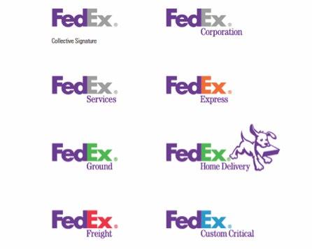 FedEx is a good example that shows different versions of alternative logos. It uses different colors, typefaces, positions and graphics to distinguish different departments. We can see that the tagline is always below the word EX which doesn’t influence the hierarchy of the entire logo.