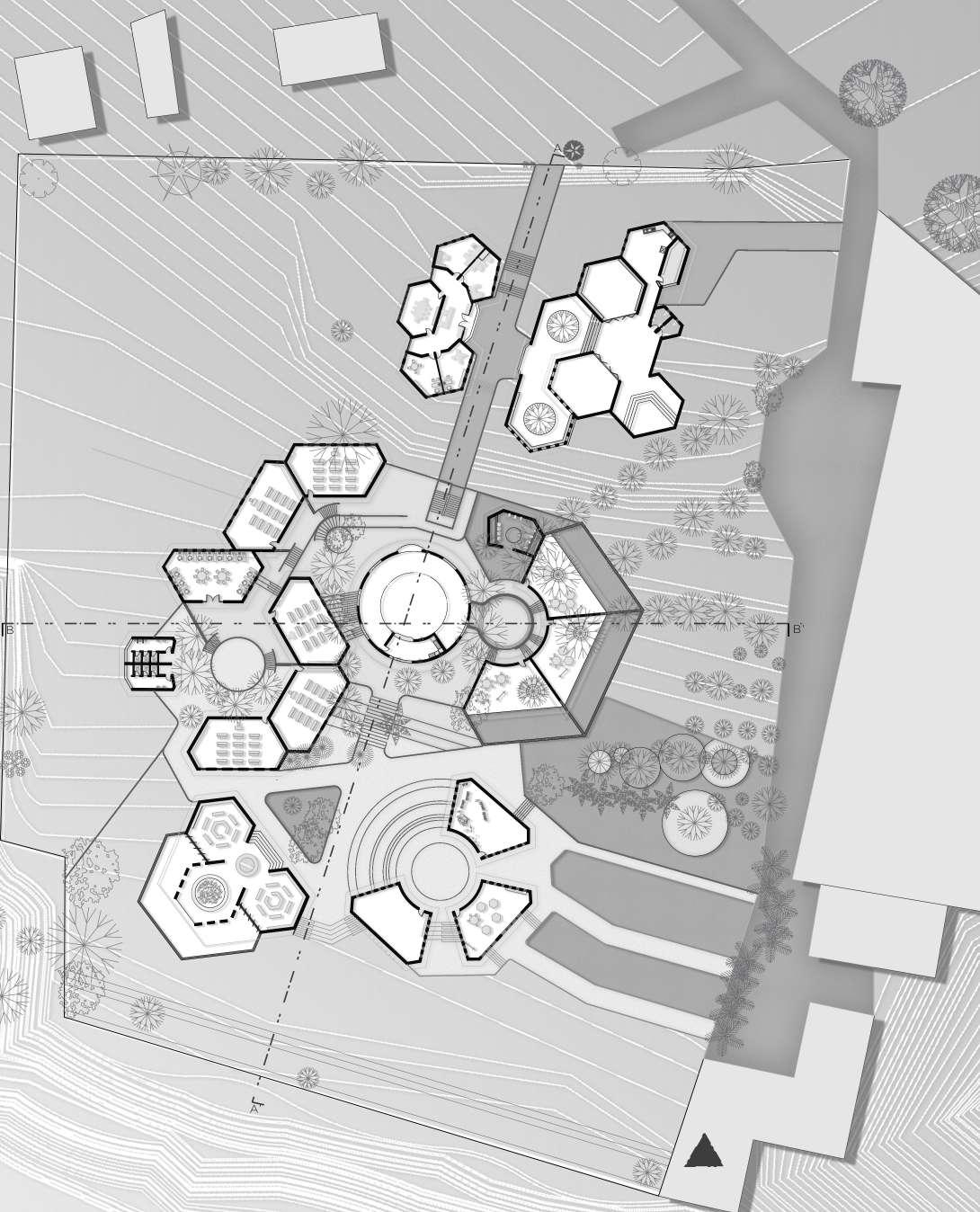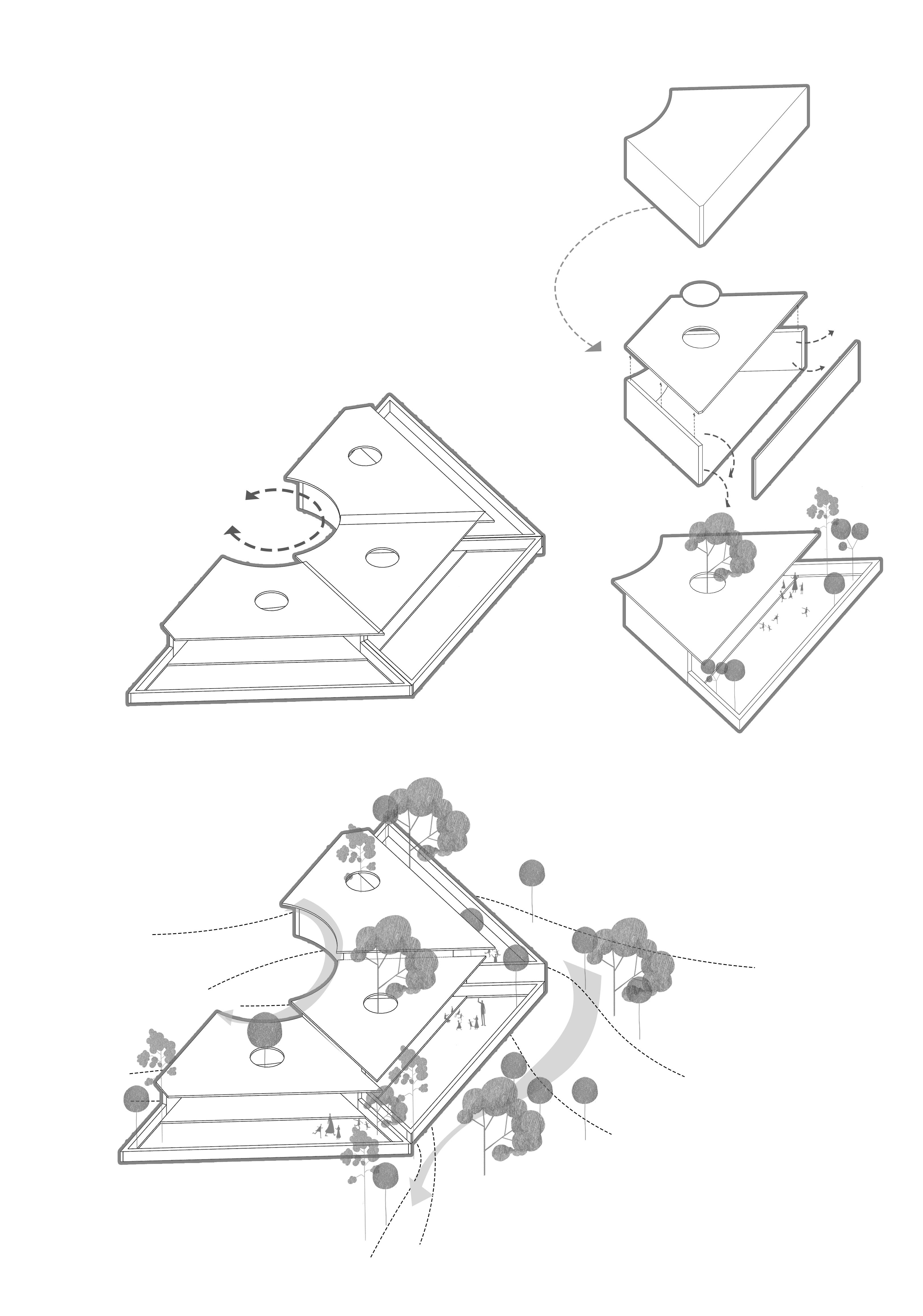 Nestled among hills and greenery, Nature’s Classroom seamlessly integrates education with its natural surroundings on sloping terrain, immersing students in nature’s splendor. They explore a natural playground, sparked by curiosity amidst flowing streams and rustling leaves. Built sustainably with local materials and passive design techniques, the school minimizes its ecological footprint, deepening its bond with nature.