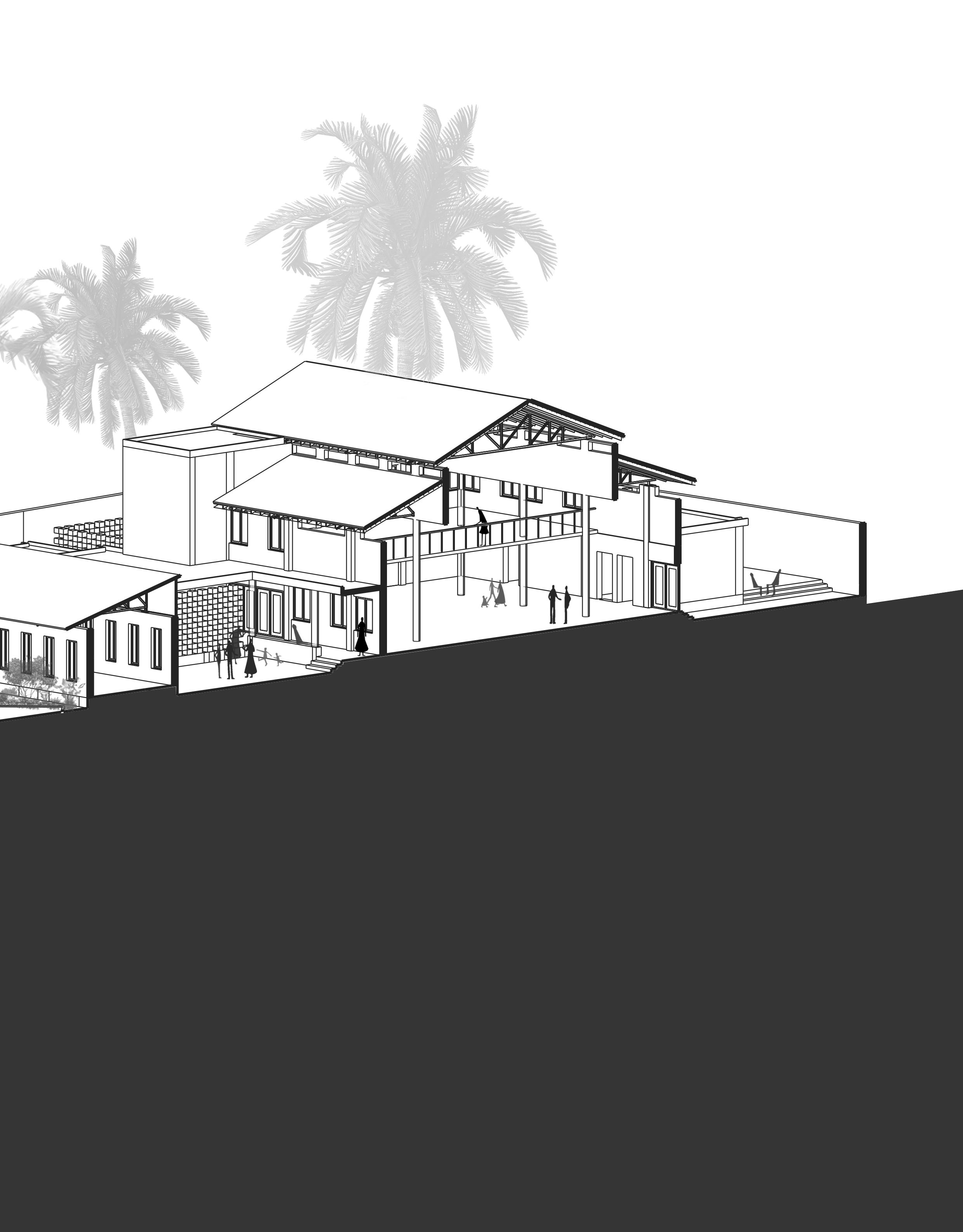 Responding to the brief, the goal is to create a community center in Ernakulam that seamlessly intertwines with nature and community life. At its heart lies a spacious community hall, drawing people together for gatherings and festivities. Inspired by the essence of South Indian traditional homes, the center emanates warmth and familiarity through its human-scale architecture. Natural
