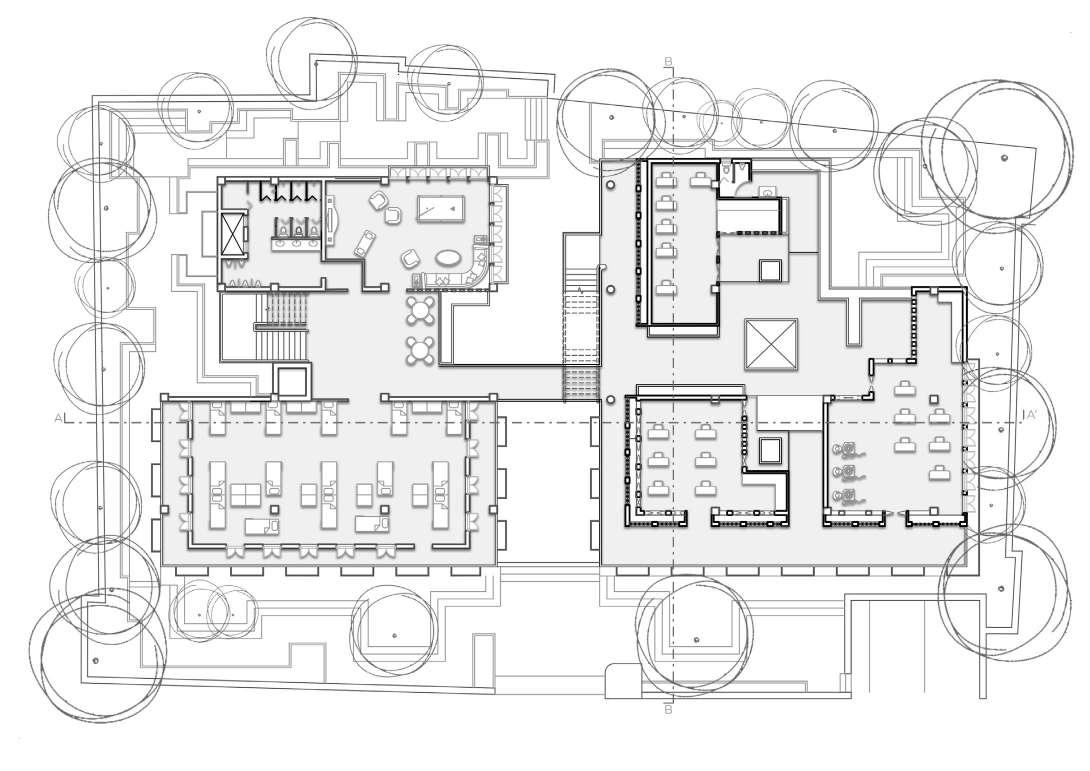 2570 2150 150MM BBCC COMPACTED EARTH 50MM SAND FILLING 100MM PCC 100MM RCC SLAB 50 MM DPC 10MM MORTAR 20 MM THK. KOTA STONE 300MM THK. LATERITE STONE BLOCK 150MM RCC SILL DRIP MOULD VATTA 100X75 TEAK WOOD FRAME 80X40 WINDOW SHUTTER 65MM BUTT HINGE 265MM LINTEL ANGLE STEEL TRUSS100X40 STEEL C SECTION 12MM CORRUGATED GI SHEET 10 MM THK. GUSSET PLATE GI SHEET RAINWATER CHANNEL 10MM THK. SUPPORT PLATE 8MM TOUGHENED GLASS A C E G H I E G H I 5000 3850 2150 4 5 6 7 6 7 iii 8 4000 4000 4000 4000 12000 24200 24300 13000 29000 30400 5300 3700 2200 2500 3200 2200 2200 4200 800 5000 5200 19800 10300 5000 40000 40300 5 4 A B C D E F G H J K L N G' 2000 1800 5000 1 2 3 5 6 7 i ii iii 9 A B C D E F G H I J K L M N A B C D E F G H I J K L M N 5300 3700 2200 2500 3200 2200 2200 4200 800 5000 1200 3800 25300 9700 5300 40000 40300 12300 12000 2200 1800 2000 2000 8000 4000 2500 1500 5000 16000 13000 29000 30400 5300 3700 2200 2500 3200 2200 2200 4200 800 5000 1200 3800 5200 19800 10300 5000 40000 40300 1000 1200 900 1200 1200 1200 1200 1800 1000 1000 1200 1000 1000 1000 1000 1800 1200 1200 1200 1200 1200 1000 700 1200 1200 3500 1200 1200 1200 1200 1200 1200 1000 800 1000 1400 3500 3500 3600 LVL 0 LVL +450 LVL +700 LVL +700 LVL +700 LVL +1150 4m Wide Service Path 2 3 4 5 6 7 C1 C2 C3 C3' C4 C5 C10 C9 C8 C7 C6 C16 C12 C13 C14 C15 C21 C20 C19 C18 C23 C24 C25 C26 C32 C31 C30 C29 C33 C34 C35 C36 C17 C27 C28 C11 C22 1 8 G' G' 1' 1' 43400 45100 2200 2200 1800 1800 C1,C2,C3, C3',C4,C5 300x400 C6,C7,C8, C9,C10 C6,C9,C10:300x400 C7,C8: 300 C11,C12,C13, C14,C15,C16 C11,C12,C15:300x400 C13,C14,C16: 300 C17,C18,C19,C20,C21 C18,C21,C22:300x400 C17,C19,C20: 300 C23,C24,C25,C26,C27 C23,C26,C10:300x400 C24,C25,C27: 300 C28,C29,C30,C31,C32 C29,C30, C31,C32:300x400 C28: 300 C33,C34,C35,C36 300x400 1000 1000 5400 3700 C22 C21,C23,C32,C33 C3,C8,C13,C20,C24 C3:300x400 C8,C13,C20,C24: 300 C3' C31,C34 C31,C34 C4,C7,C14,C19,C25 C7,C14,C19,C25: 300 C5,C6,C15,C18, C26,C29,C36 300x400 C16,C17, C27,C28 300 150MM Long 10MMØ G.I J-Bolt with Limpet & Rubber Washer (TYPICAL) PURLIN FIXED WITH CLEAT BY 10MM Ø BOLTS CLEAT 150MM LONG BOLTED WITH TOP CHORD WITH 10MM Ø BOLTS C.G.I Sheet (20 SWG) TRUSS TOP CHORD PGI SHEET (20 SWG) RAIN WATER GUTTER 100MM Ø NUT BOLT 200 200 LEGENDS NO TYPE WIDTH SILL LINTEL DISCREPTION MATERIAL 01 02 03 04 05 D1 850 HYDRAULIC 2100 D2 3500 2100 G1 1850 D4 1000 D5 850 2100 FOLDABLE PIVOTED WOOD WOOD IRON WOOD SINGLE SHUTTER 2100 W1 1200 DOUBLE SHUTTER 900 2100 WOOD GLASS DOOR WINDOW SCHEDULE DOUBLE SHUTTER 06 07 W2 650 SINGLE SHUTTER 600 2100 WOOD 07 V1 1000 VENTILATION WITH EXHAUST 1600 2100 GLASS ALUMINIUM Working | Semester 6 | 2023 29 Center Line Plan Detail B