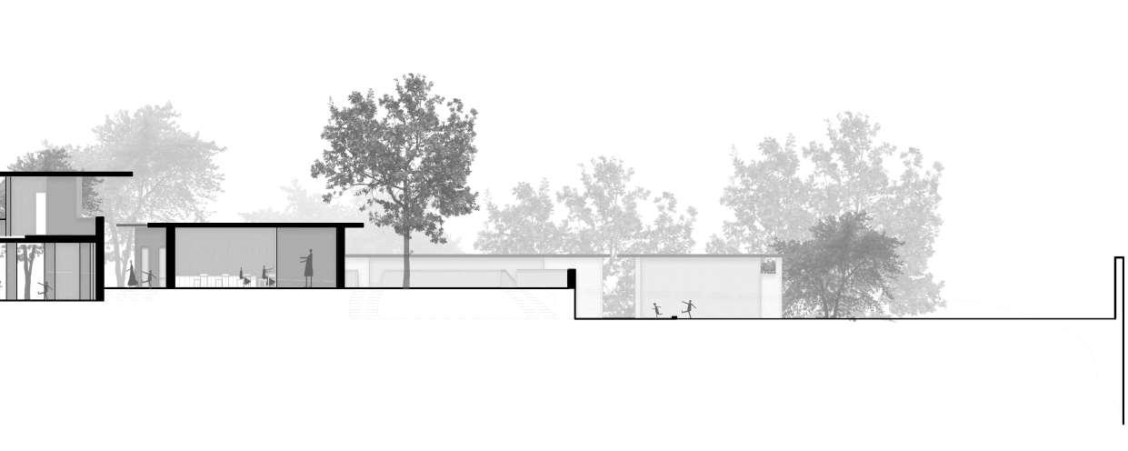 Cafeteria Section through dining area, Kitchen and classroom upstairs
