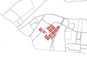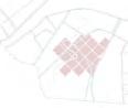 A functional zoning grid, aligned with the site boundary, used for landuse distribution.
