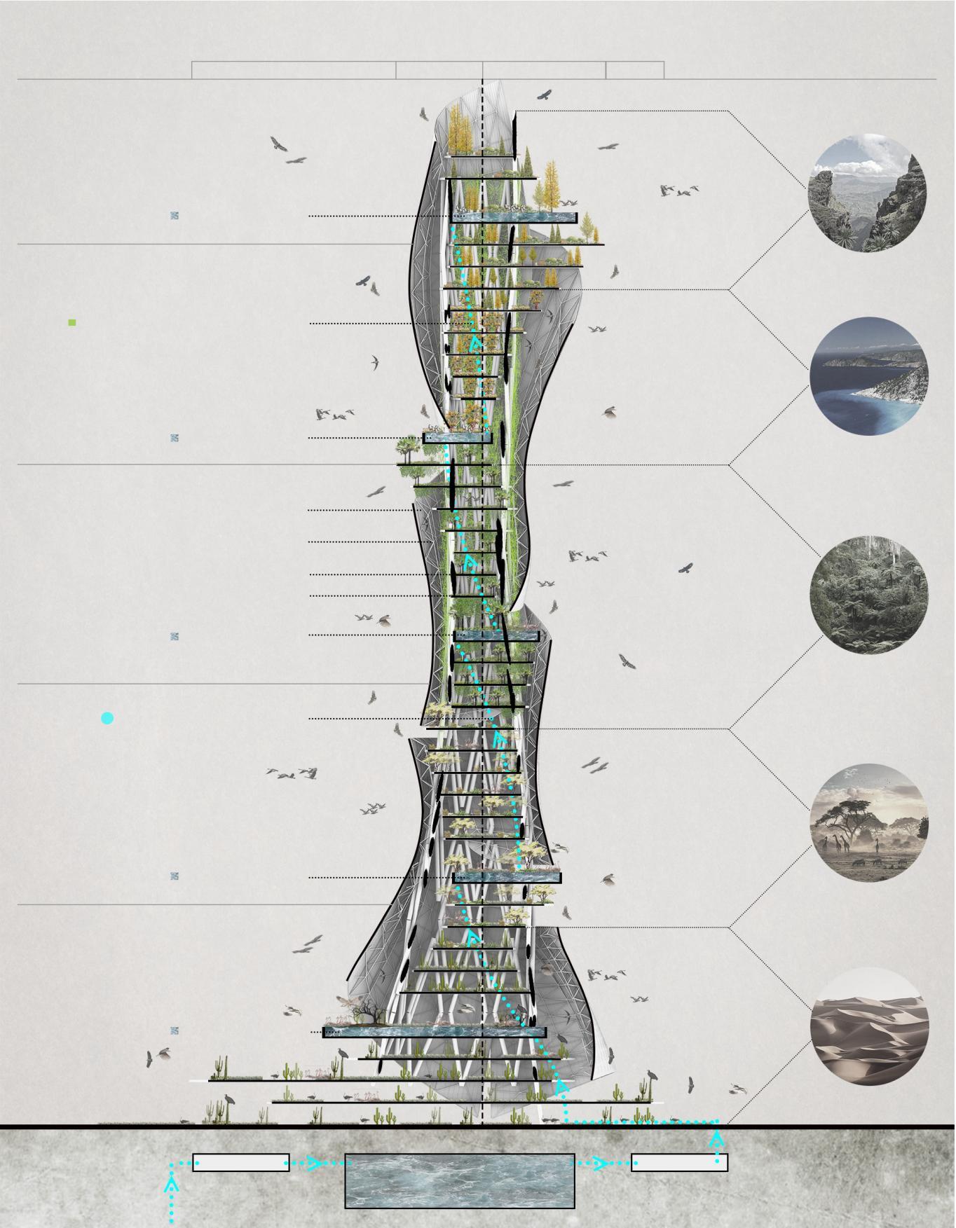 The scheme is designed for a bird conservation skyscraper in the Djoudj National Bird Sanctuary,Senegal.