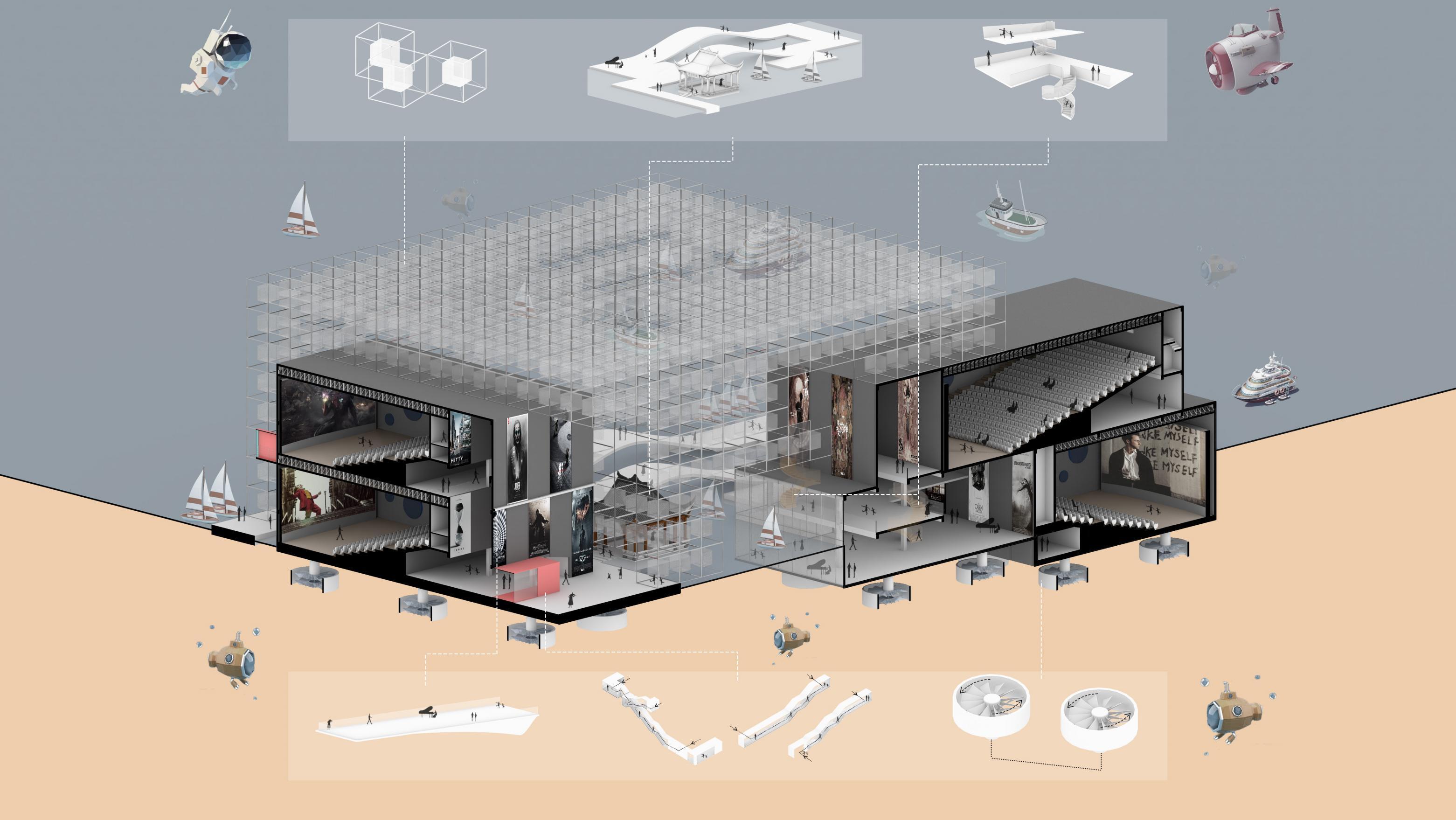 3.The movie hall is partially submerged in water and add the theater lobby.