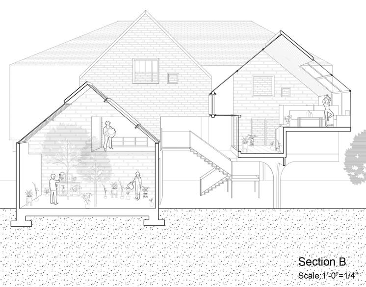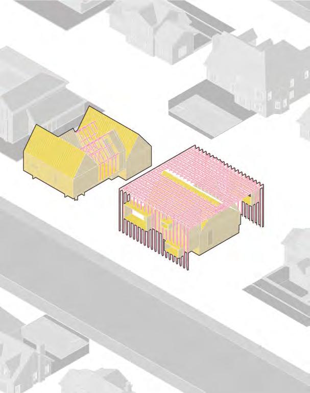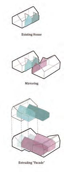 We designed two types of suburban house units. each provide for two family units. First one is double facade. Its facade have no entry to other house units. These two units totally separate with other family. The Other one is hidden facade. The facades are hidden in the boudary. Only the television windows on the out side structure can see part of it. In these two family units. it provide for more close family kinship. It does not have any boundary inside of house.