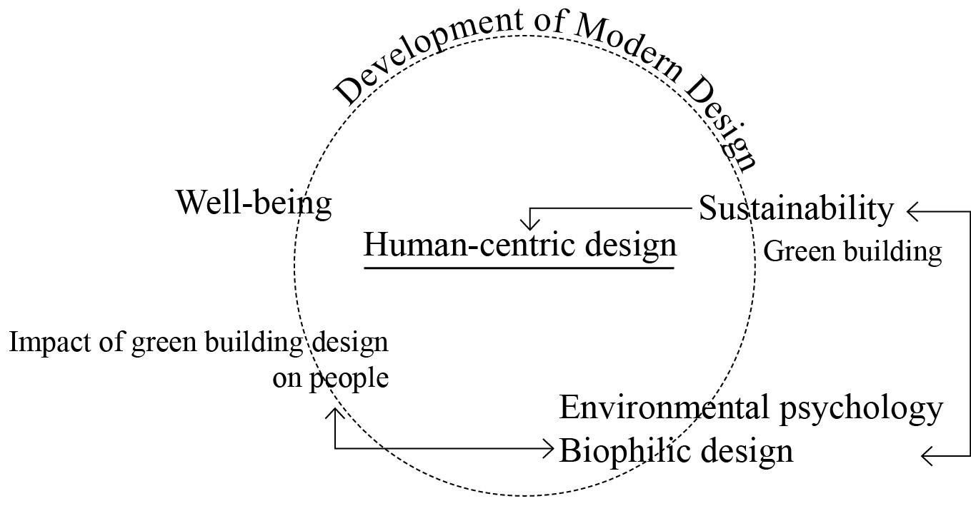 In the context of modern design, theoretical frameworks such as sustainable design, nature-friendly design, environmental psychology, and participatory design are concerned not only with the function and form of the structure, but also with how architectural design can be used to produce a living environment that is conducive to human health.
