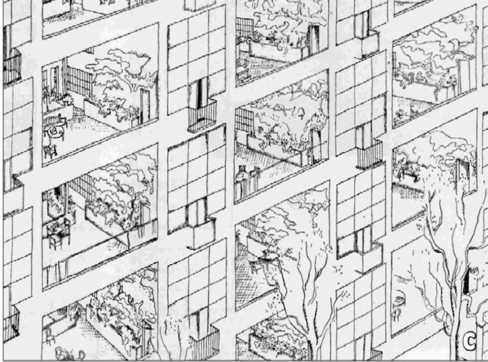 Rapid industrialisation and urbanisation in the 20th century hurt human living and working conditions, and the concept of modern design emerged as a response to the problems of the age.2 Modern design emphasises function over form, aiming to improve the quality of life for all people by creating good designs that can be mass-produced.3 Buildings are the main spaces within cities that house the production and living of their inhabitants. Statistically, human beings spend 85-90% of their lives in buildings; therefore, the building environment directly impacts the well-being of all human beings.4 Against this backdrop, the emergence of green architecture as a synonym for sustainability in modern architecture is a natural progression of the modern design philosophy. (Fig 1)In the book Are We Human, co-authored by architectural historians Beatriz Colomina and Mark