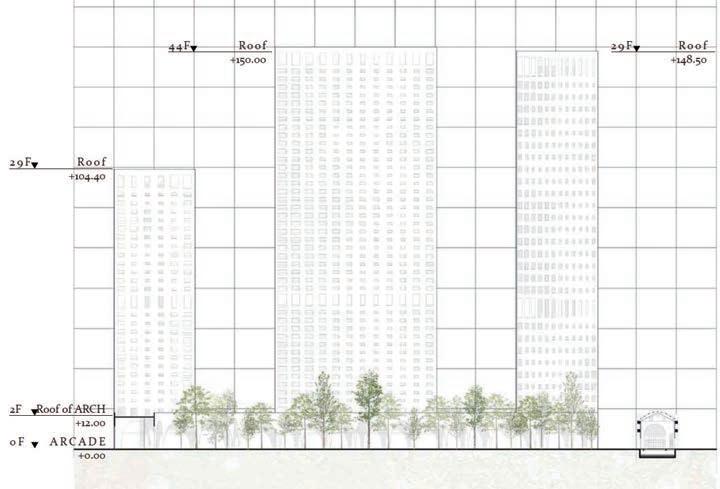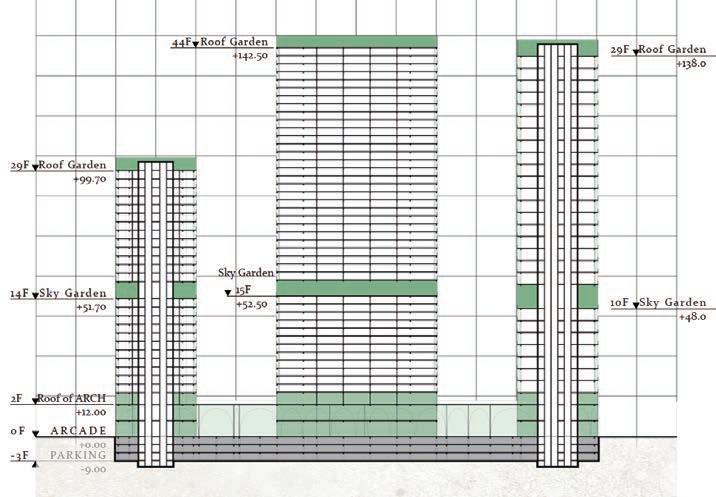 GREEN ELEVATION OF THREE TOWERS