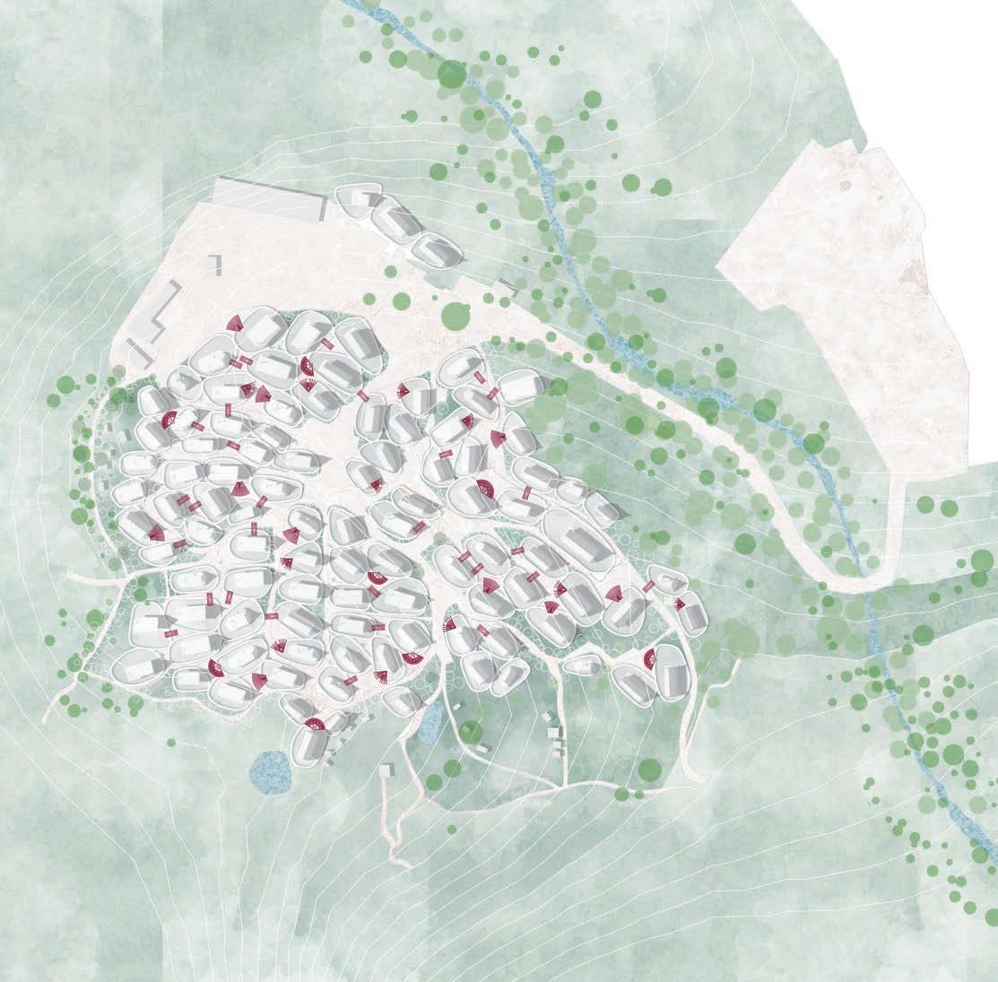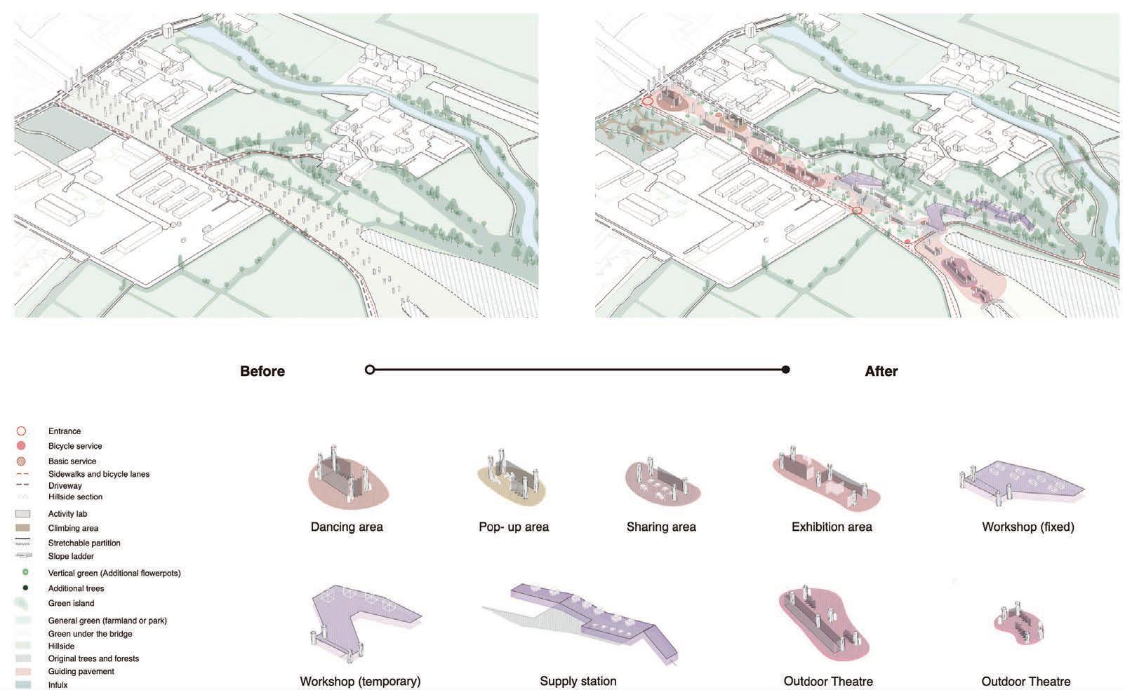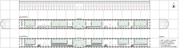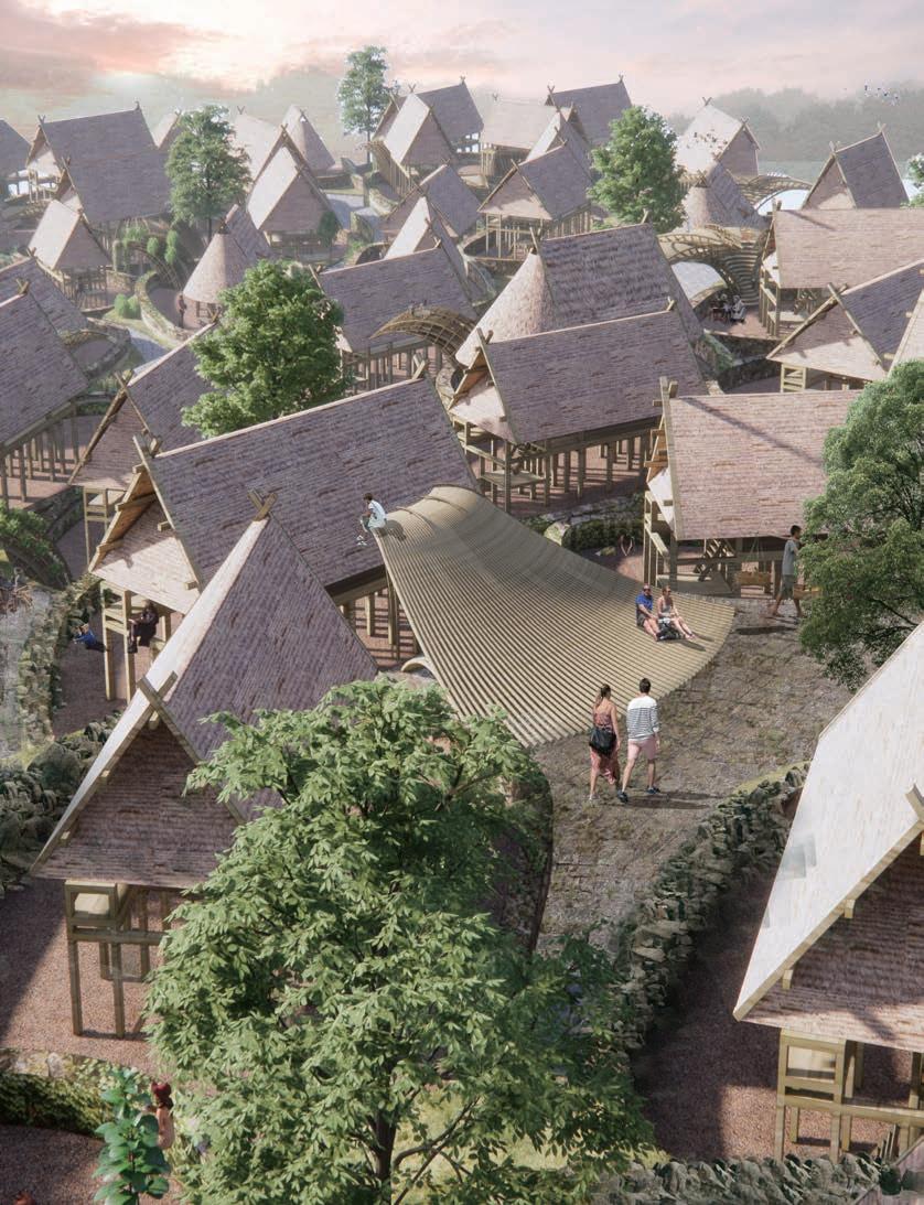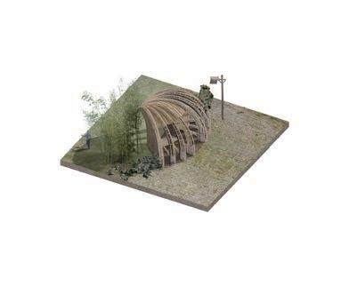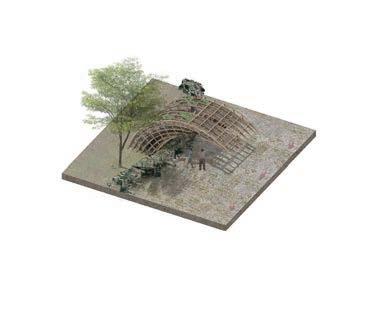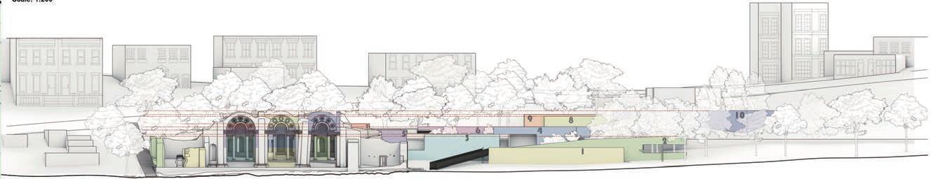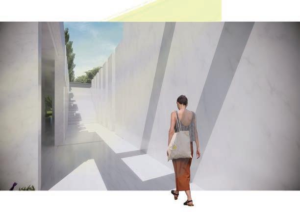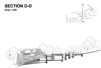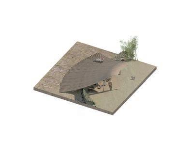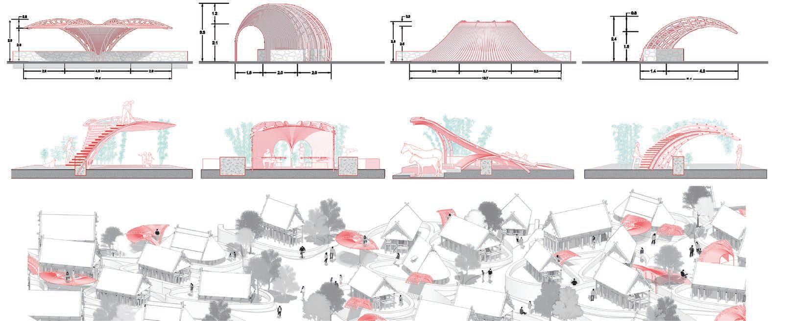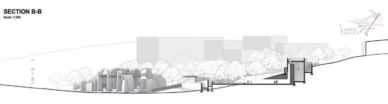 Because of this vertical space overlapping concept, the focus of the design has shifted from the ground to the wall; for heritage protection and site hieght di erence, we used acupunctural approach to replace part of the wall and insert the bamboo structural interventions.