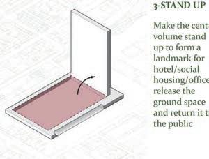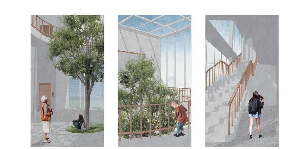 STEP 2 We considered the connection between the site and buildings with educational attributes in the city and took full advantage of the site's features to provide a speci c space for extracurricular activities for the group of students.