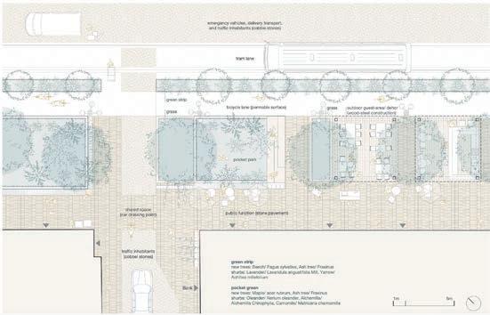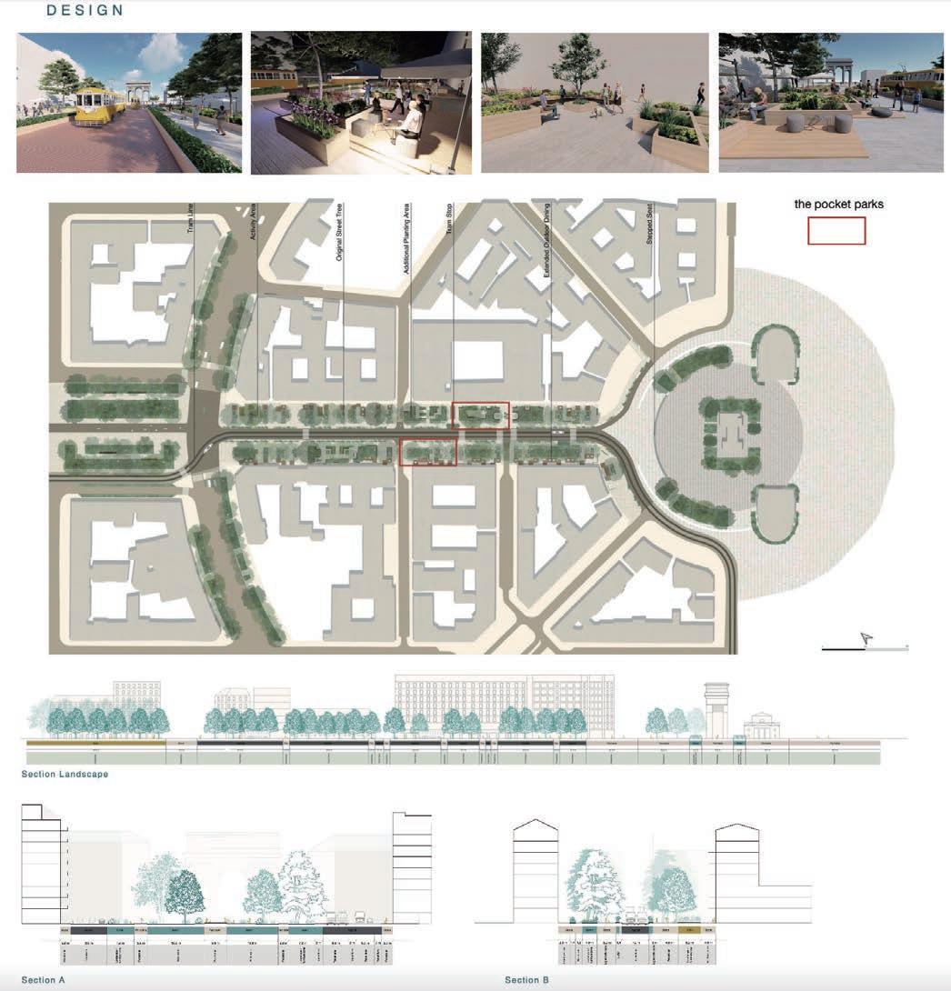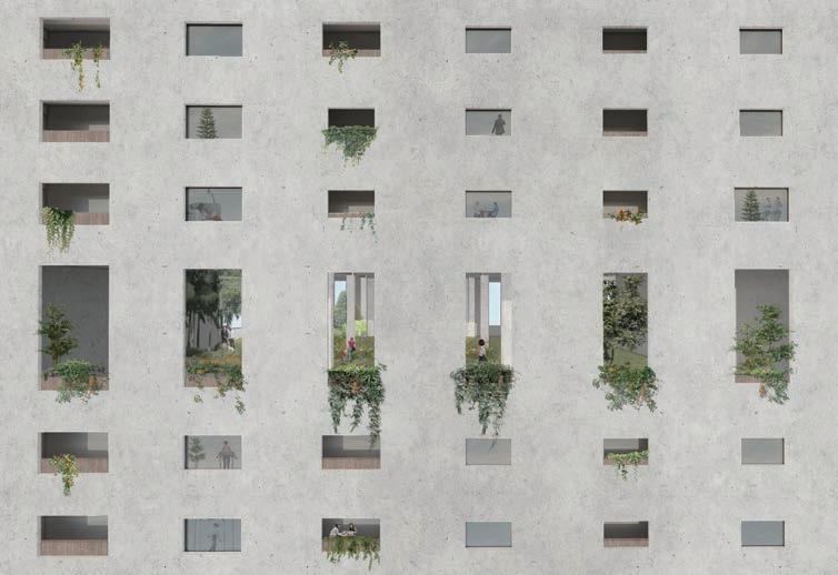 The project consists of a net of connections that are developed from the boulevards running through the city, creating a direct connection between the natural areas on the edges of the city and the more urban area, avoiding the fragmentation of green spaces caused by the continuous anthropization of spaces. In addition, the boulevards will connect to a green belt following the con rmation of the city, creating a cohesive whole. The objectives of the project are to avoid fragmentation of green spaces, improve air quality, limit surface heating, and improve permeability.