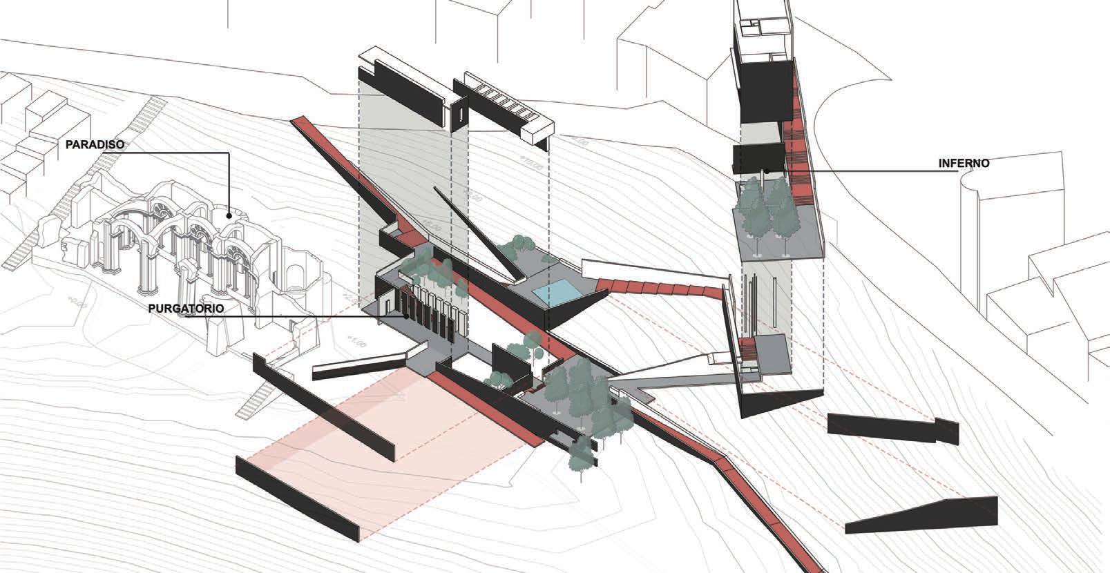 Genazzano is a small old town built on a narrow rocky spur surrounded by forests at the eastern edge of the Rome province. Over the last decades, however, scholars have debated its attribution to Donato Bramante (1444-1514), a protagonist of the Italian Renaissance. Because according to the survey, many buildings in Bramente were influenced by the Divine Comedy, we decided to use the starting point of the Renaissance - the Divine Comedy to continue this legend.