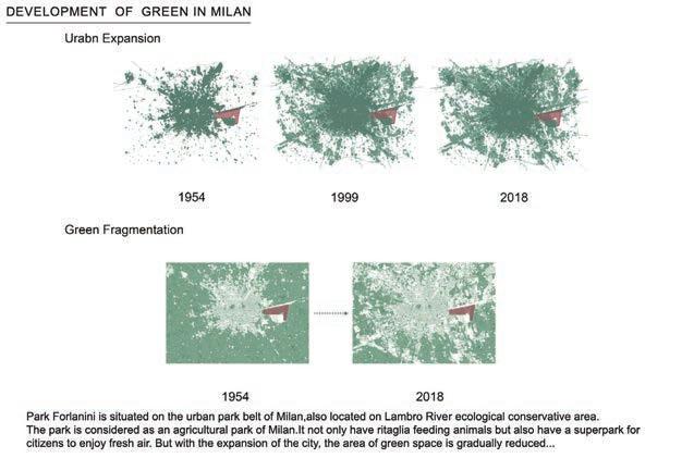 8."Di raction of the CITYSCAPE" in Milan—let green area of city center to di raction the entire Lombardia–2023