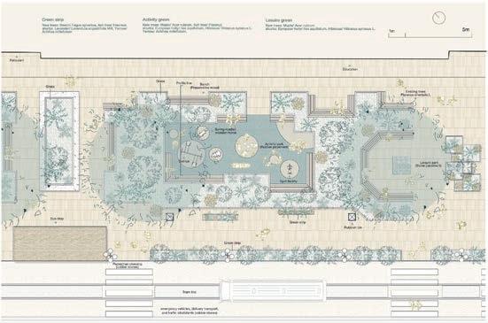 The direction of the road is specified through the relationship of the main axis , and the open space , river and road are integrated , so that it can fully interact with people . Glades with di erent themes provide a variety of services for different groups of people , enriching the park's excursions .