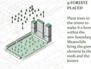 At an abstract level, planting trees in the green space of the municipality and reusing the existing woods of the city and around it to create bird habitats. The small pieces of green thus become a united system. It has a resilient for disaster.